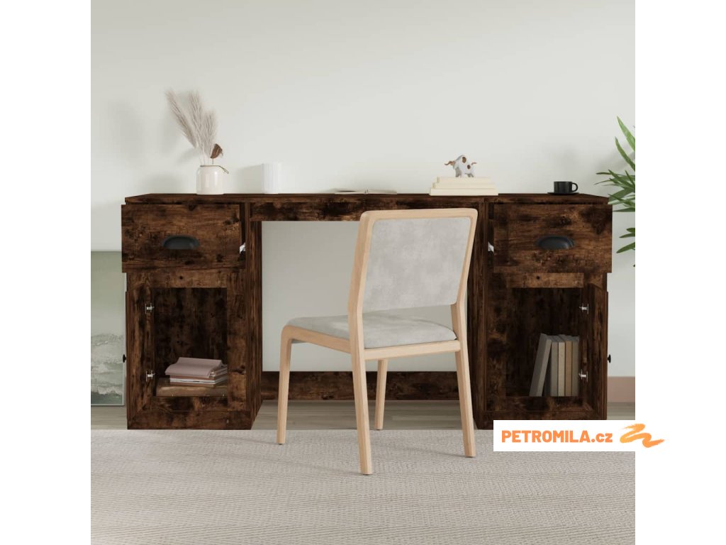 Psací stůl se skříňkou kouřový dub kompozitní dřevo
