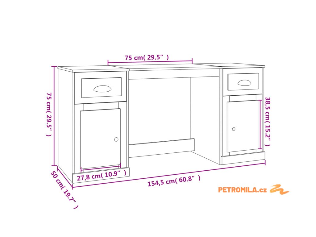 Tento psací stůl se skříňkami dodá vašemu studijnímu nebo pracovnímu prostředí elegantní šarm.
