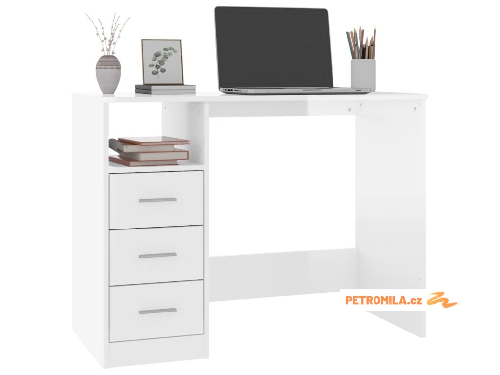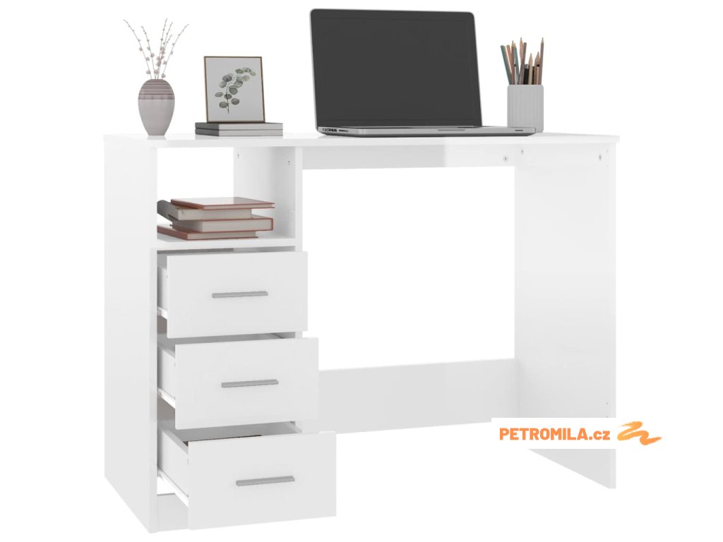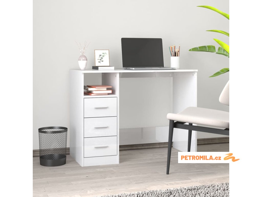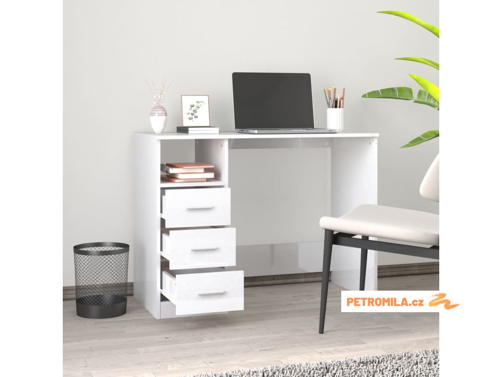Psací stůl se zásuvkami bílý vysoký lesk 102x50x76 cm kompozit