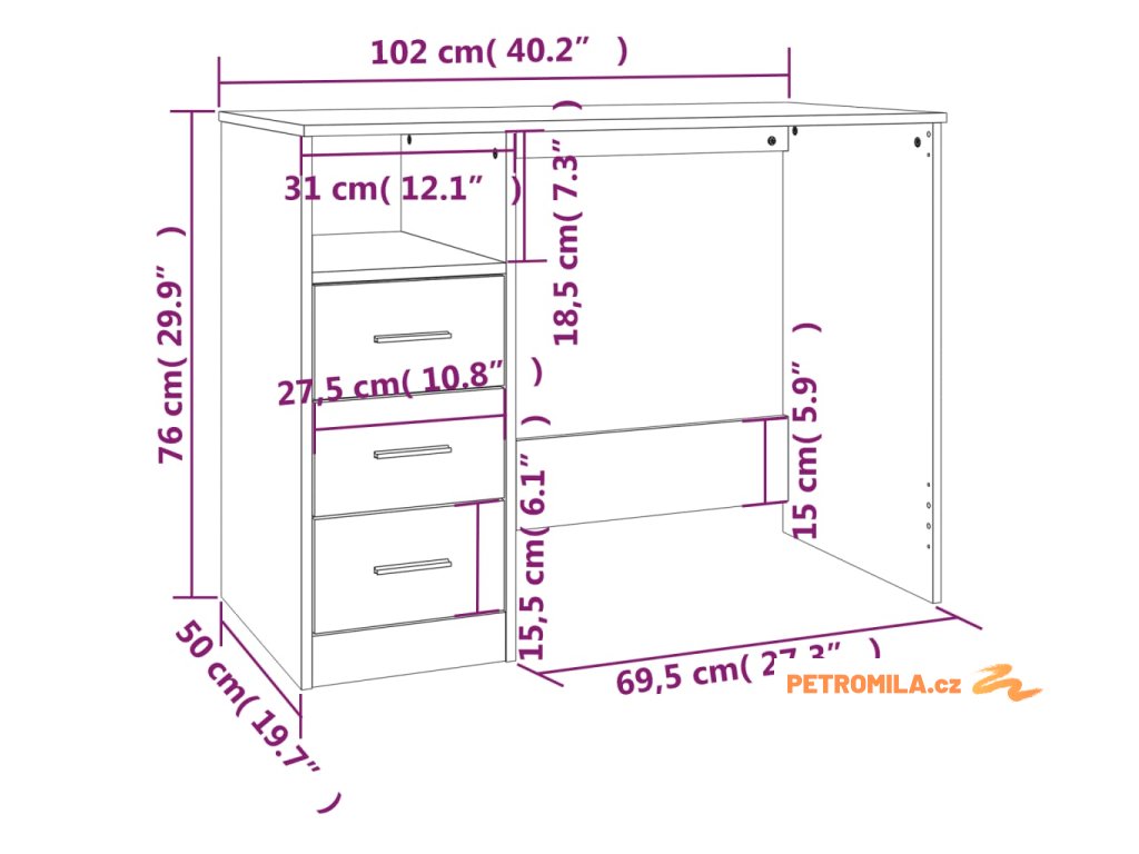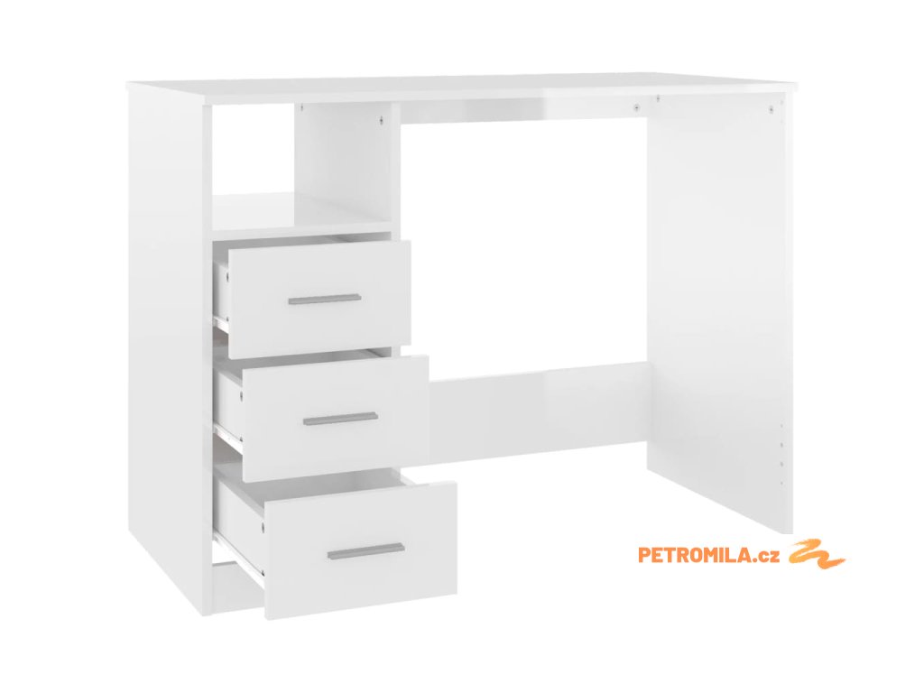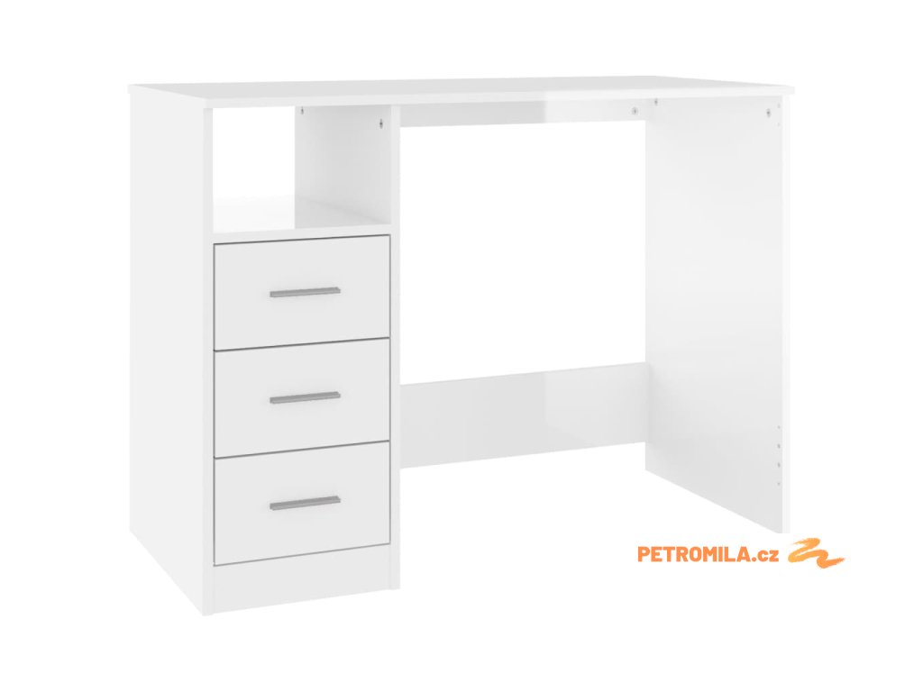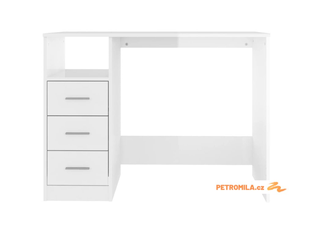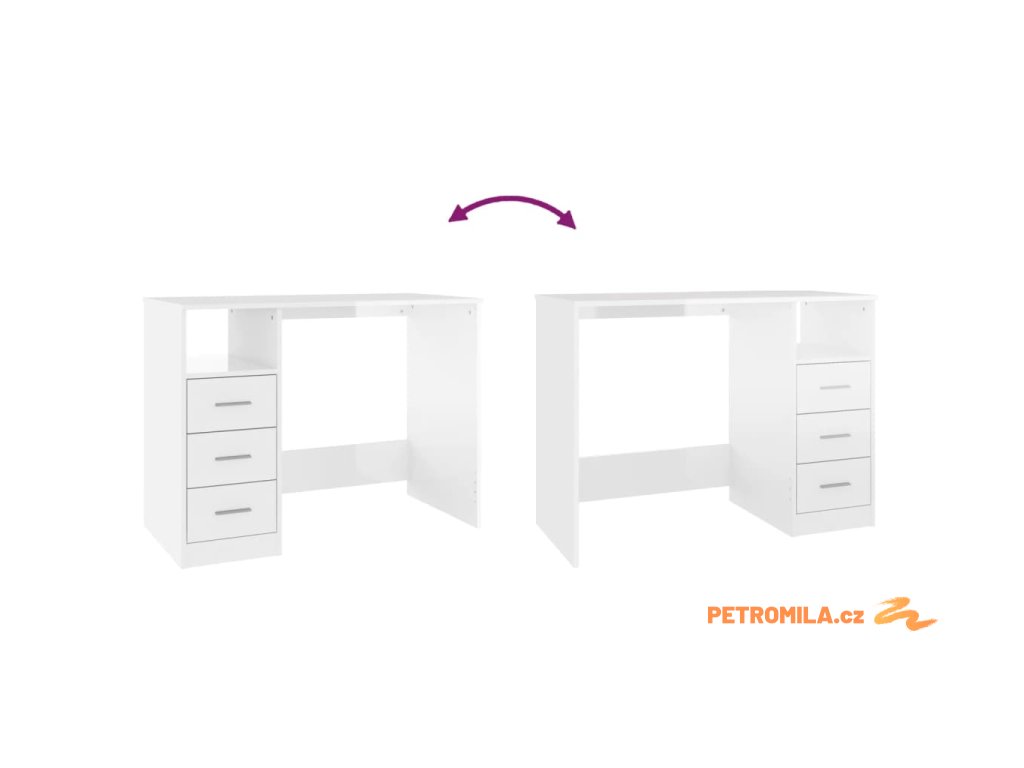 Psací stůl se zásuvkami bílý vysoký lesk 102x50x76 cm kompozit