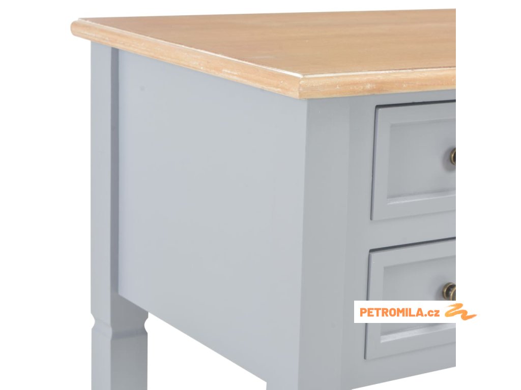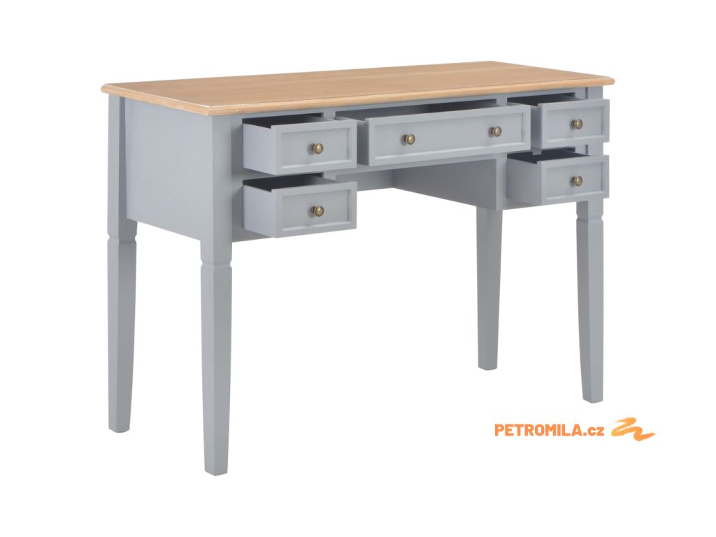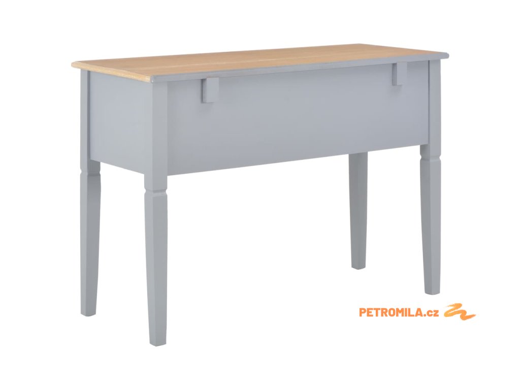 Tento bytelný psací stůl je vyrobený z vysoce kvalitní MDF a borového dřeva s šedým nátěrem.