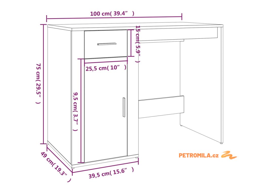 Psací stůl šedý sonoma 100 x 49 x 75 cm kompozitní dřevo