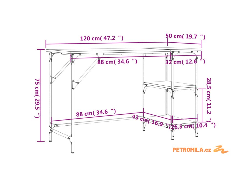 Psací stůl šedý sonoma 120 x 50 x 75 cm kov a kompozitní dřevo