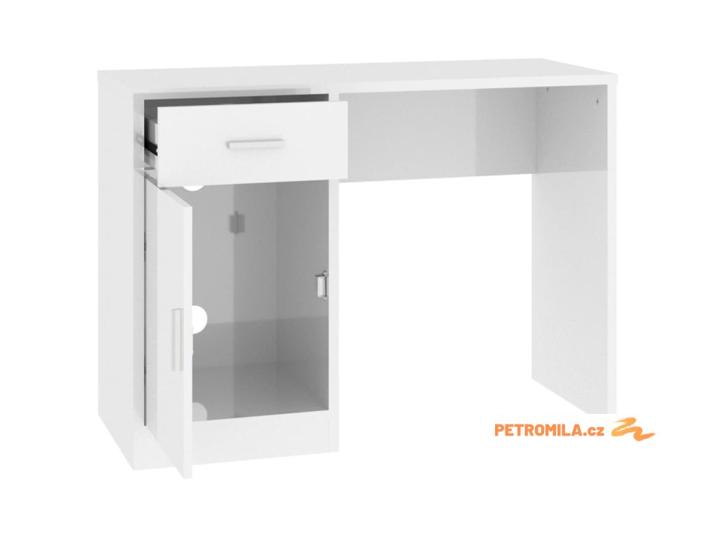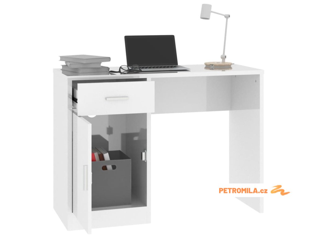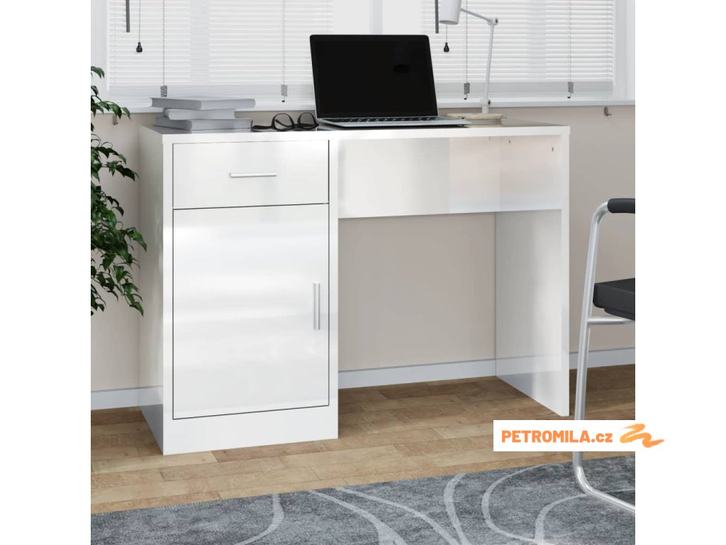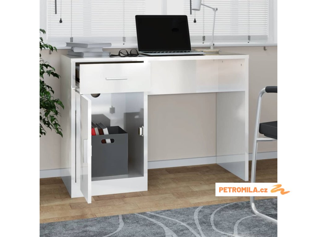 Psací stůl zásuvka a skříňka lesklý bílý 100x40x73 cm kompozit
