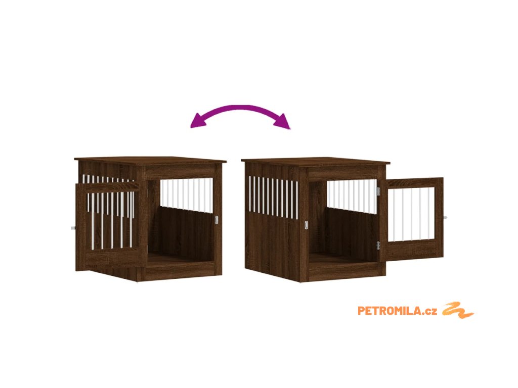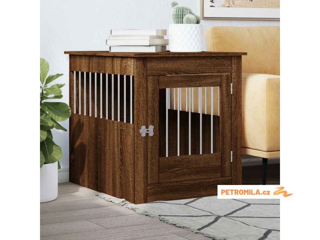 Tato psí bouda, která slouží jako klec pro psa i jako odkládací stolek, je praktickým a poutavým doplňkem vašeho obývacího pokoje.