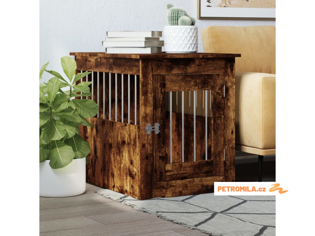 Tato psí bouda, která slouží jako klec pro psa i jako odkládací stolek, je praktickým a poutavým doplňkem vašeho obývacího pokoje.