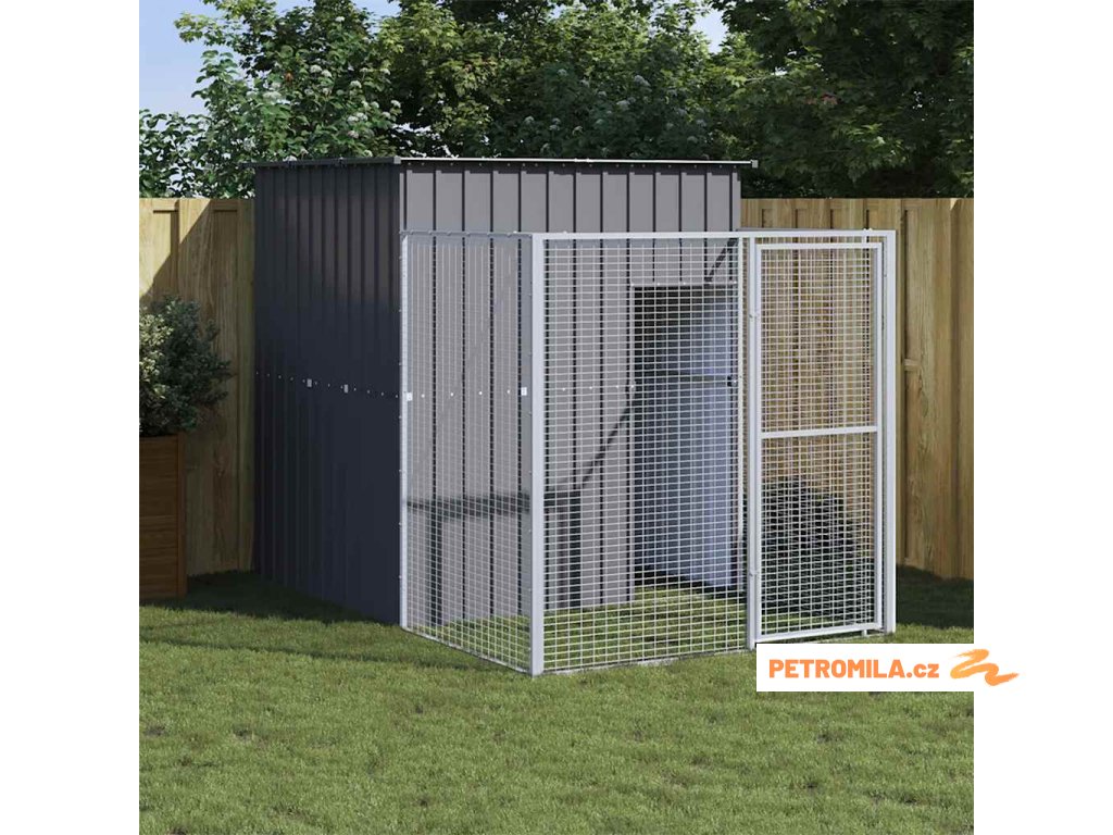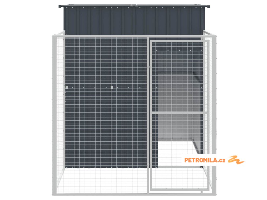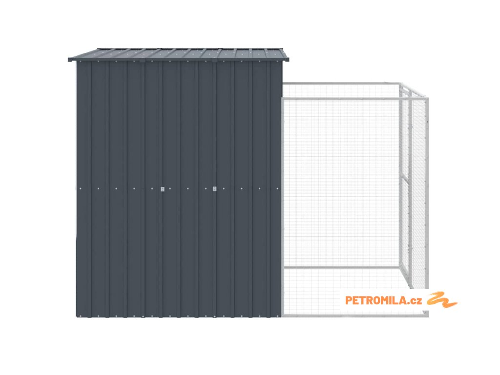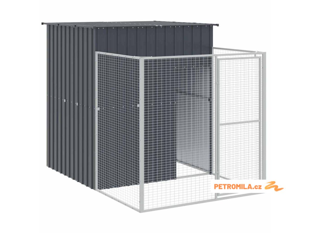 Psí bouda s výběhem antracitová 165x251x181 cm pozinkovaná ocel