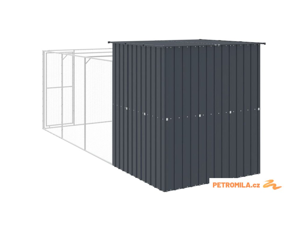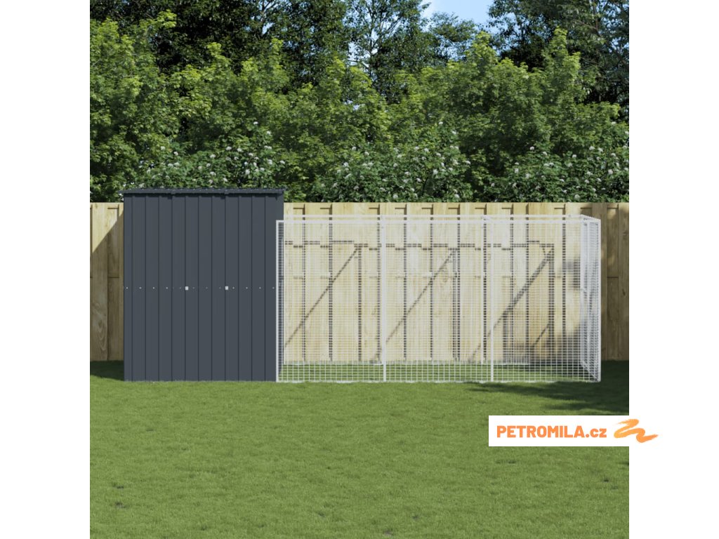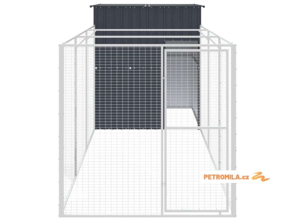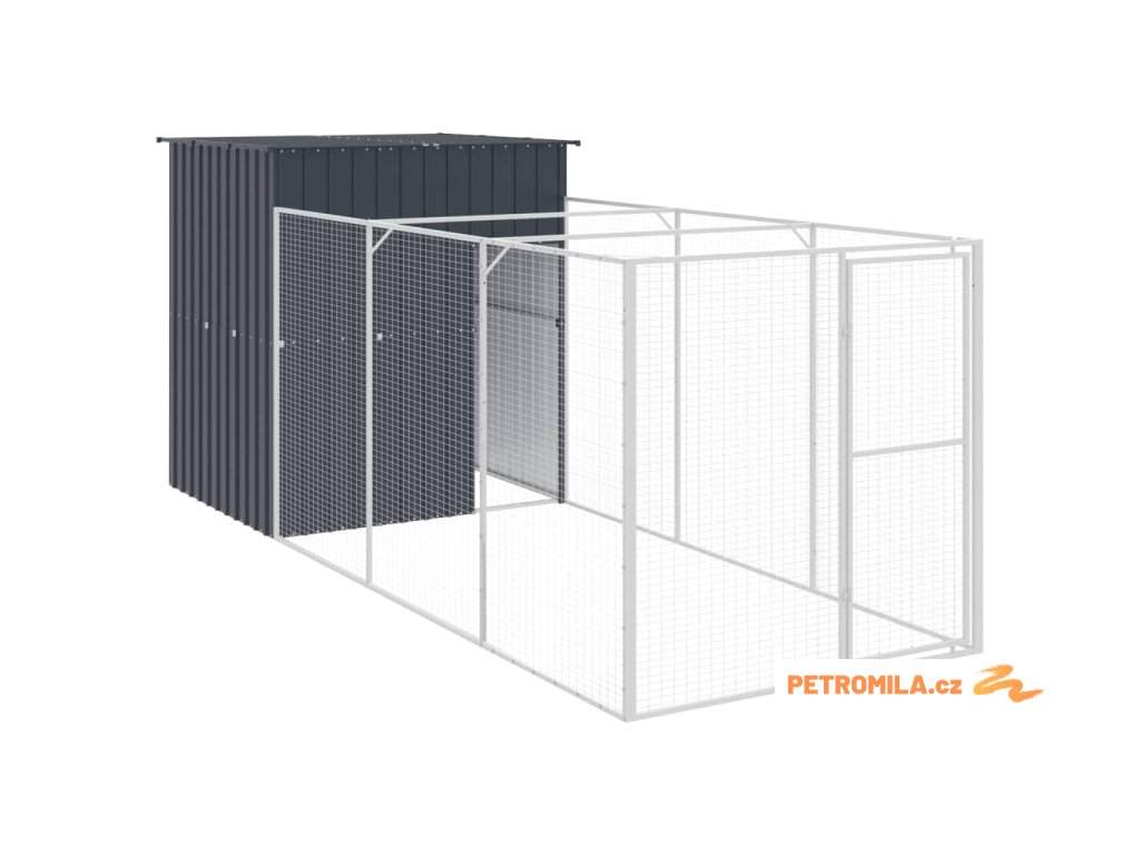 Psí bouda s výběhem antracitová 165x455x181 cm pozinkovaná ocel