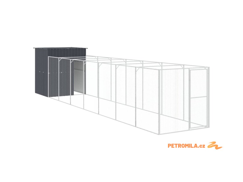 Psí bouda s výběhem antracitová 165x863x181 cm pozinkovaná ocel
