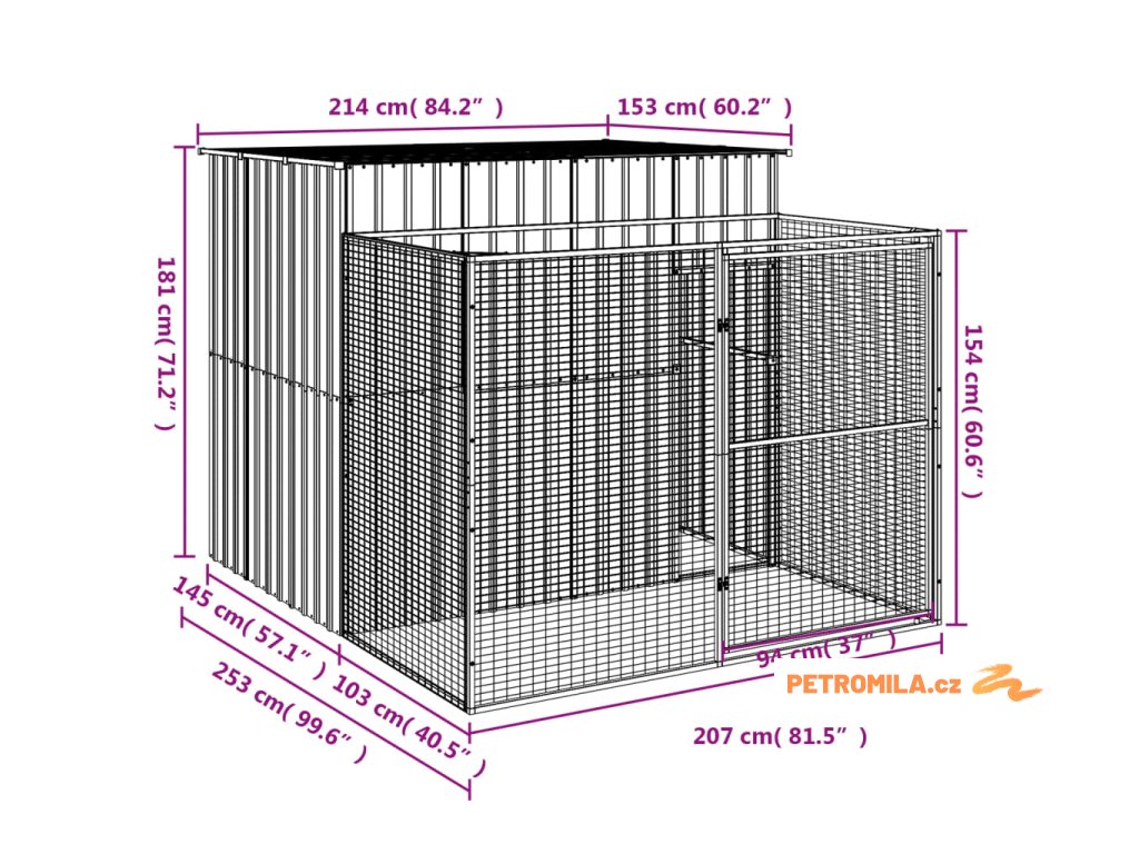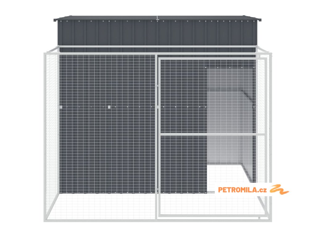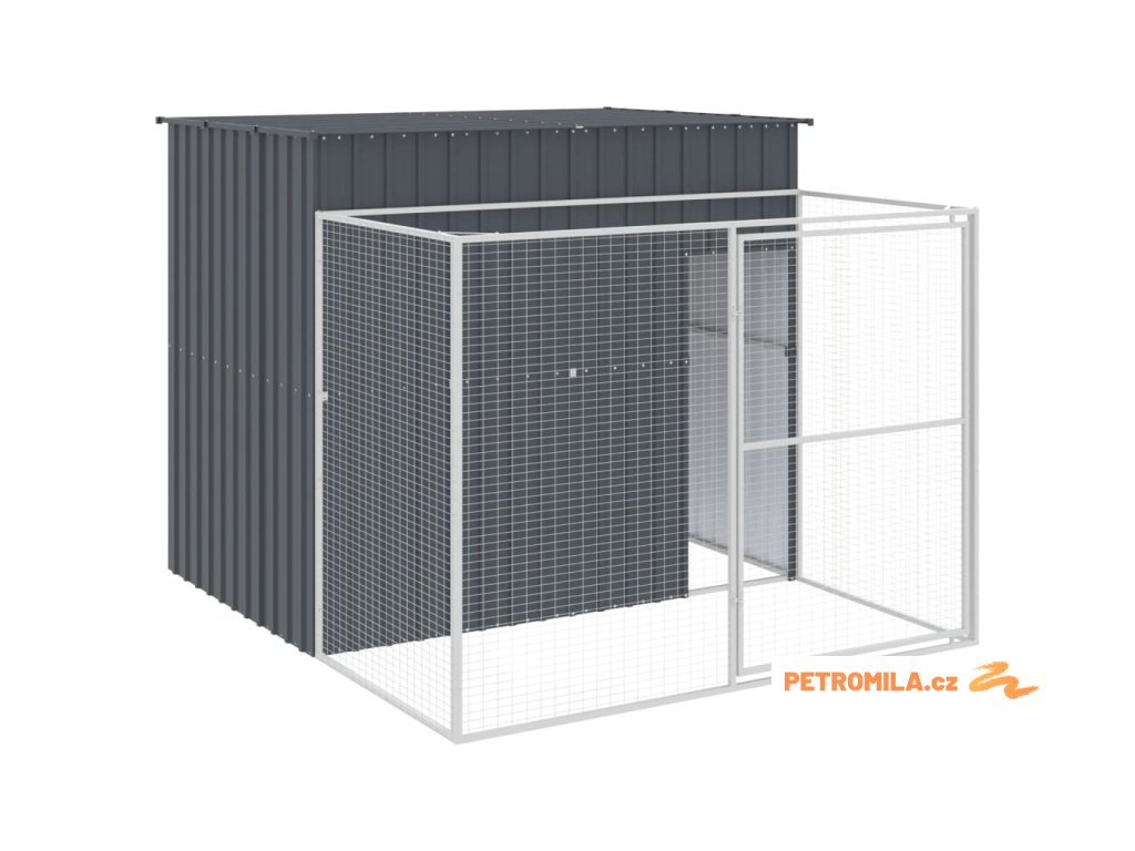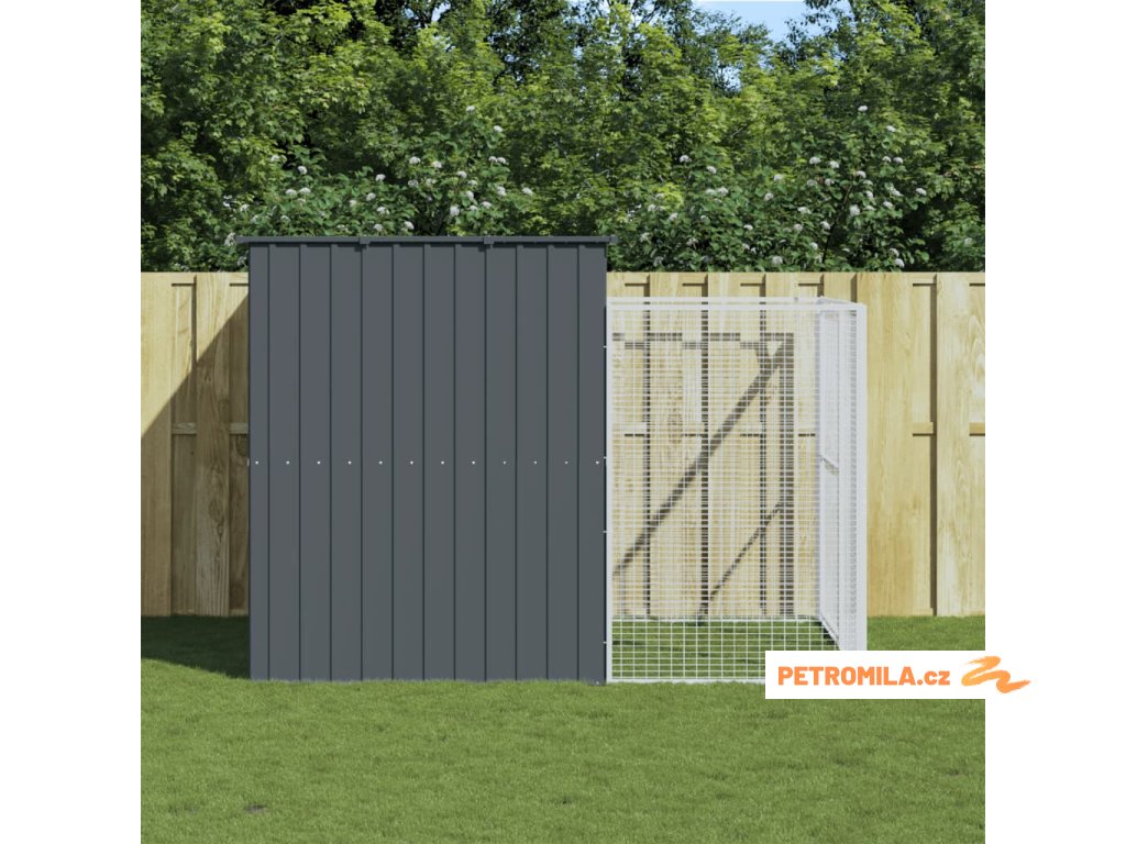 Psí bouda s výběhem antracitová 214x253x181 cm pozinkovaná ocel