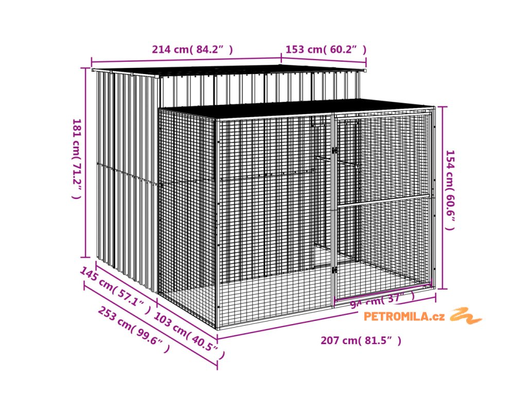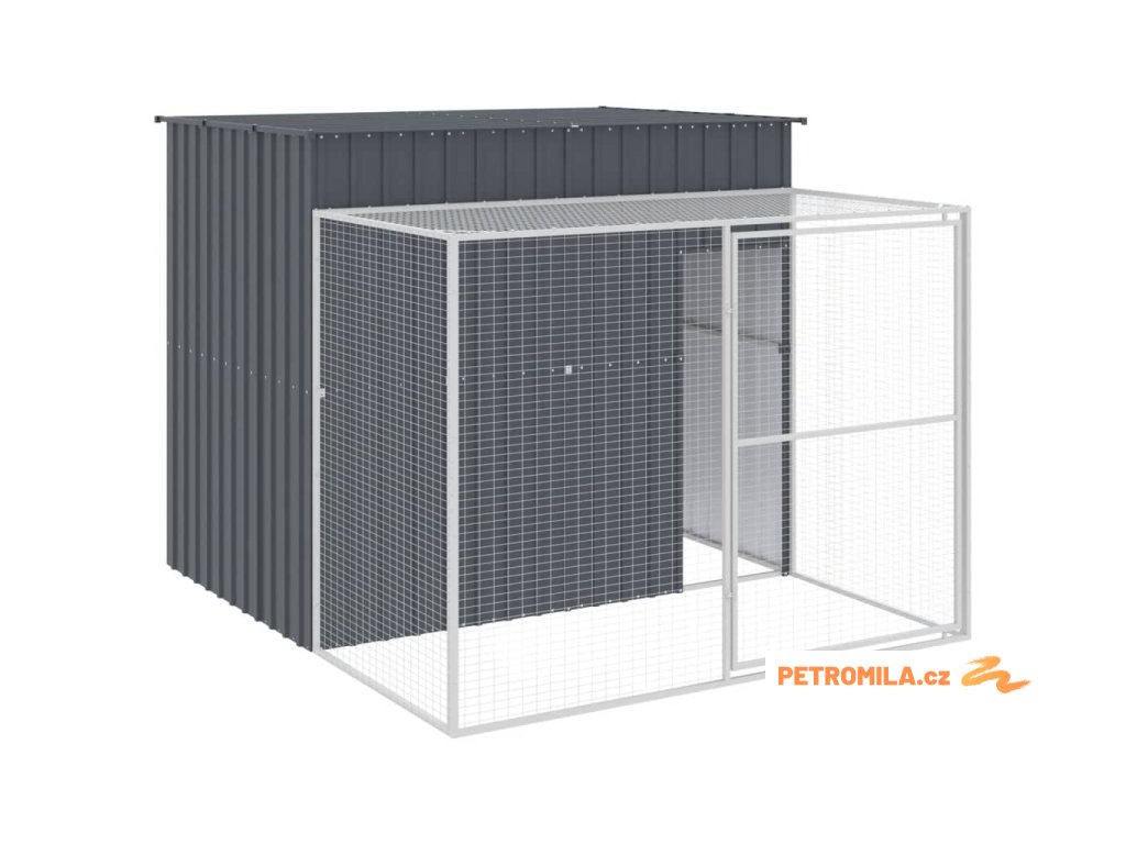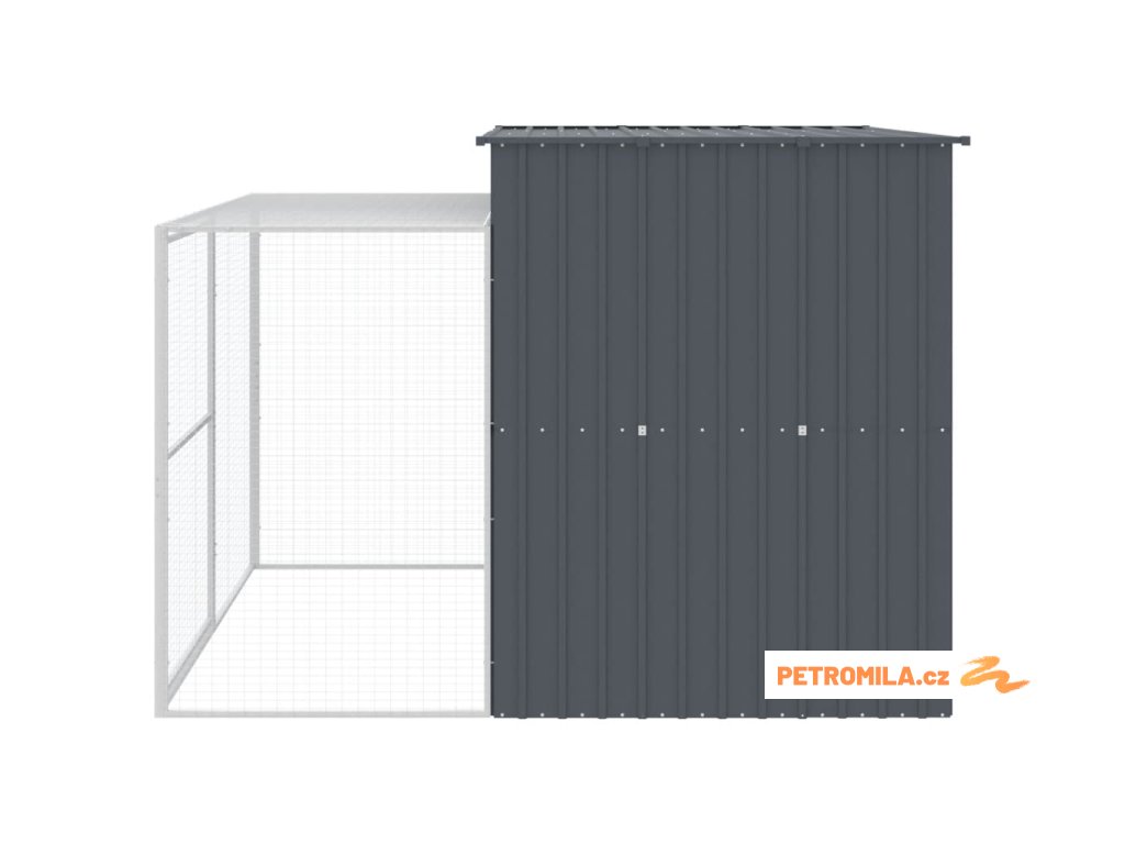 Psí bouda s výběhem antracitová 214x253x181 cm pozinkovaná ocel