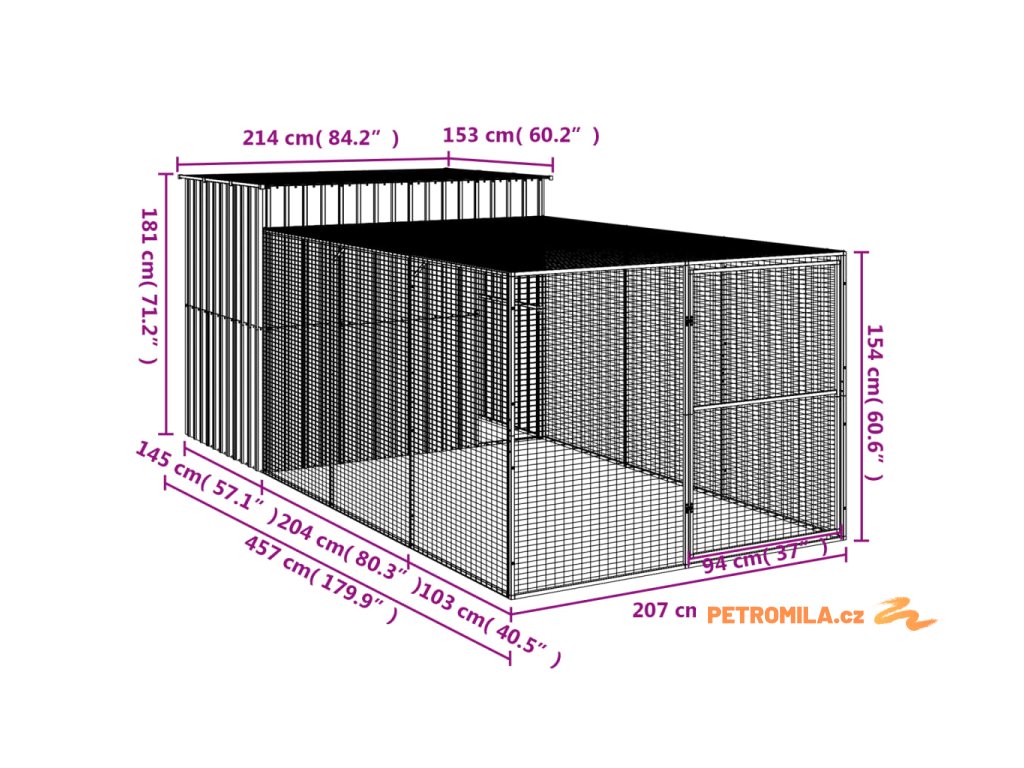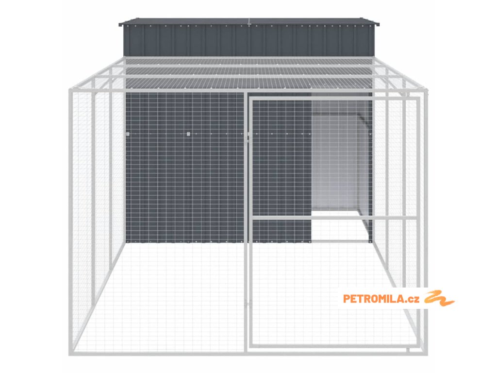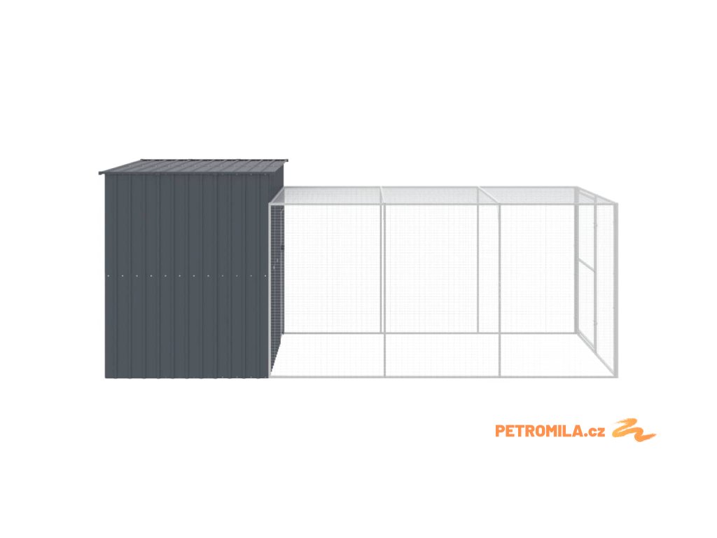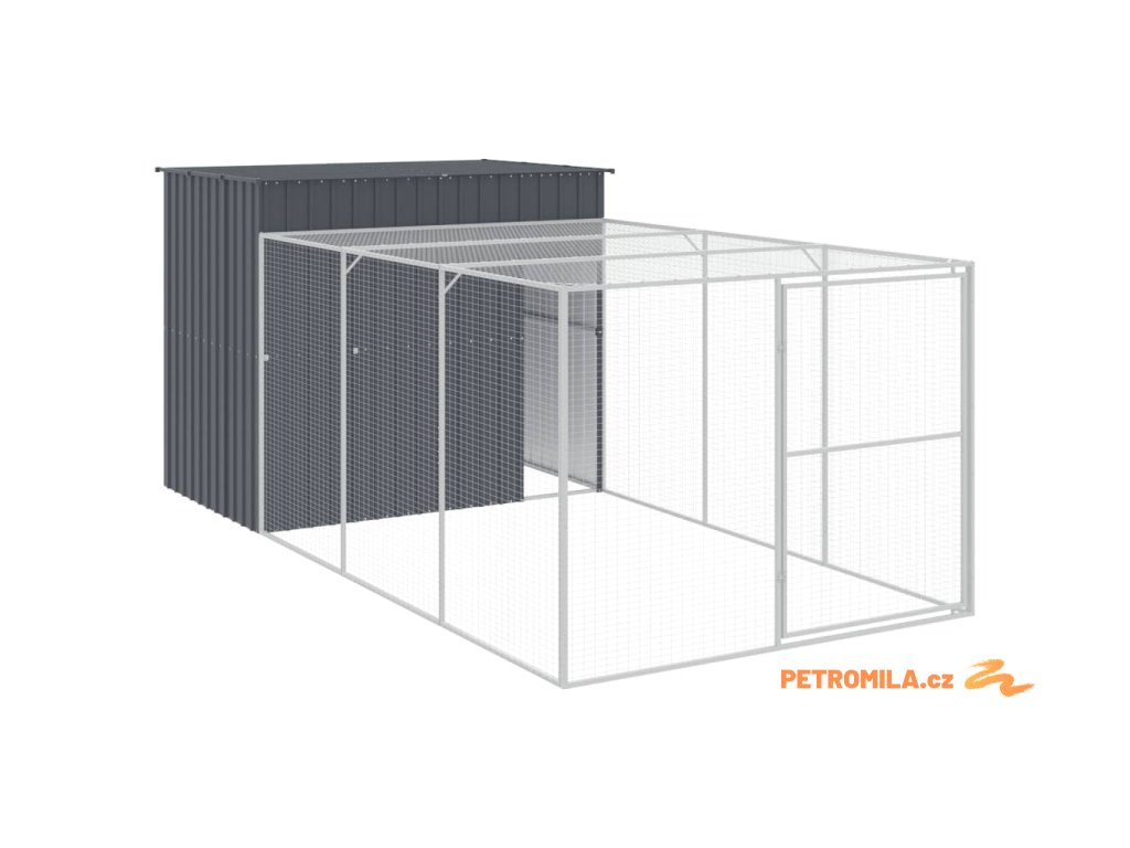 Psí bouda s výběhem antracitová 214x457x181 cm pozinkovaná ocel