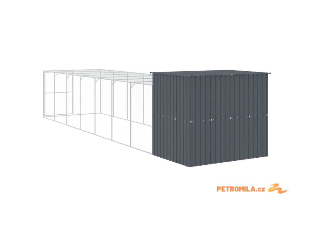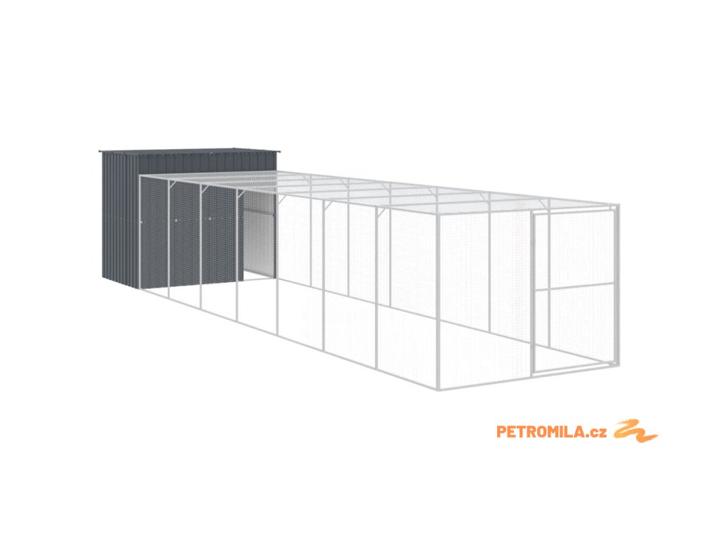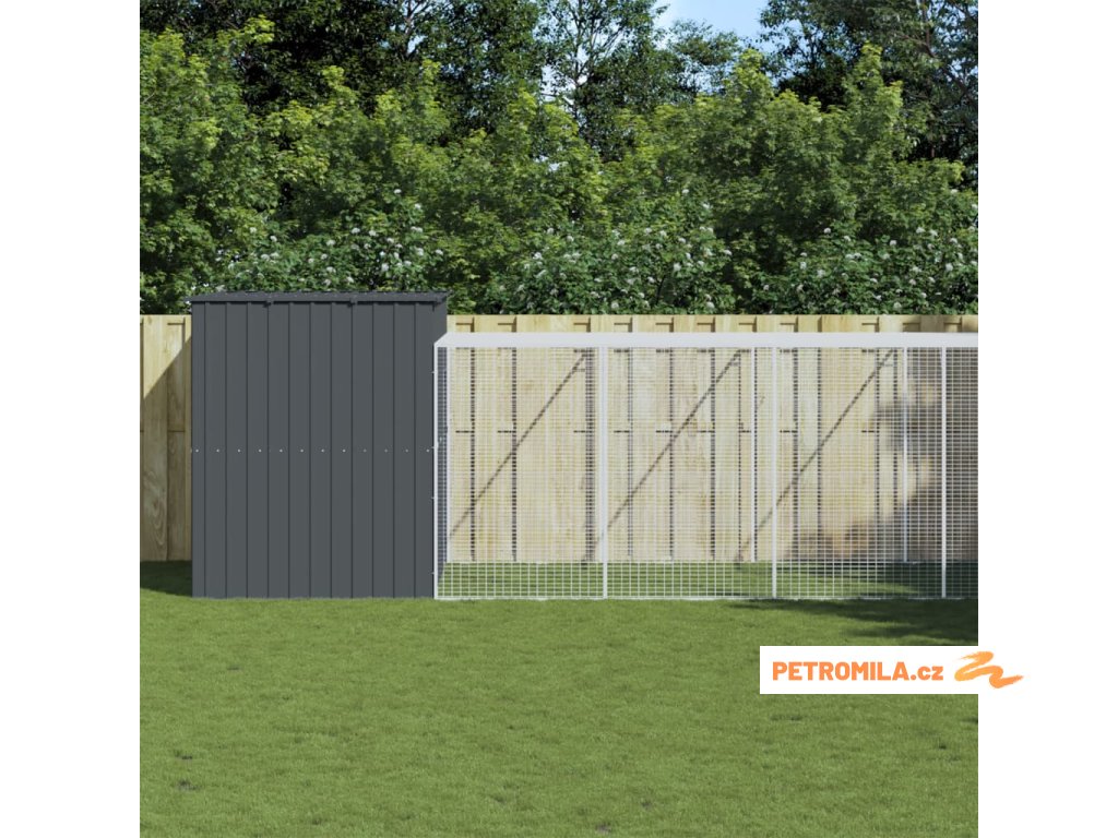 Psí bouda s výběhem antracitová 214x865x181 cm pozinkovaná ocel