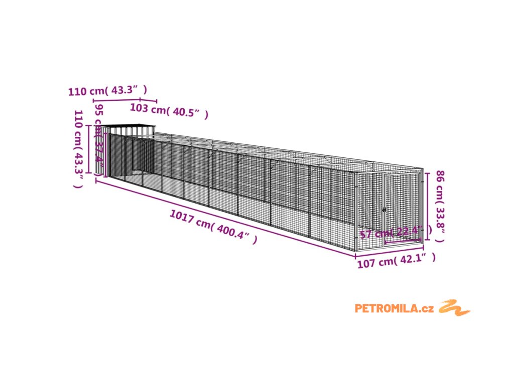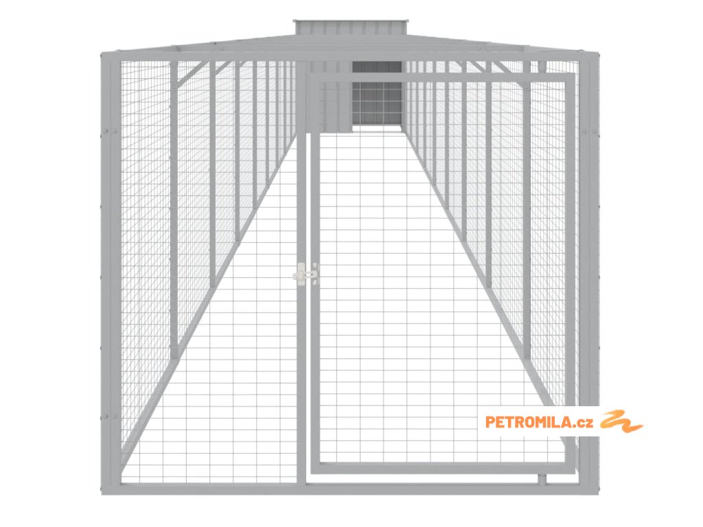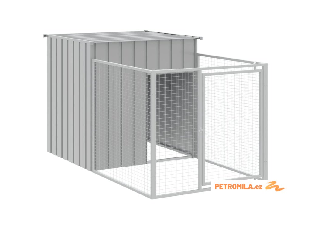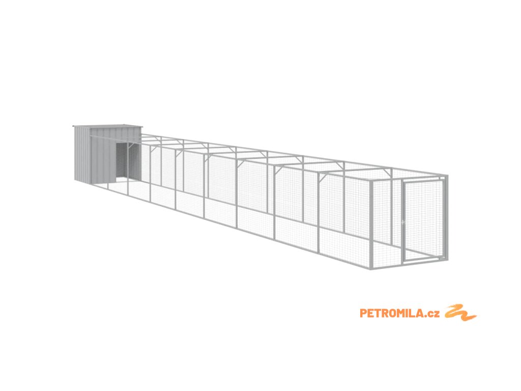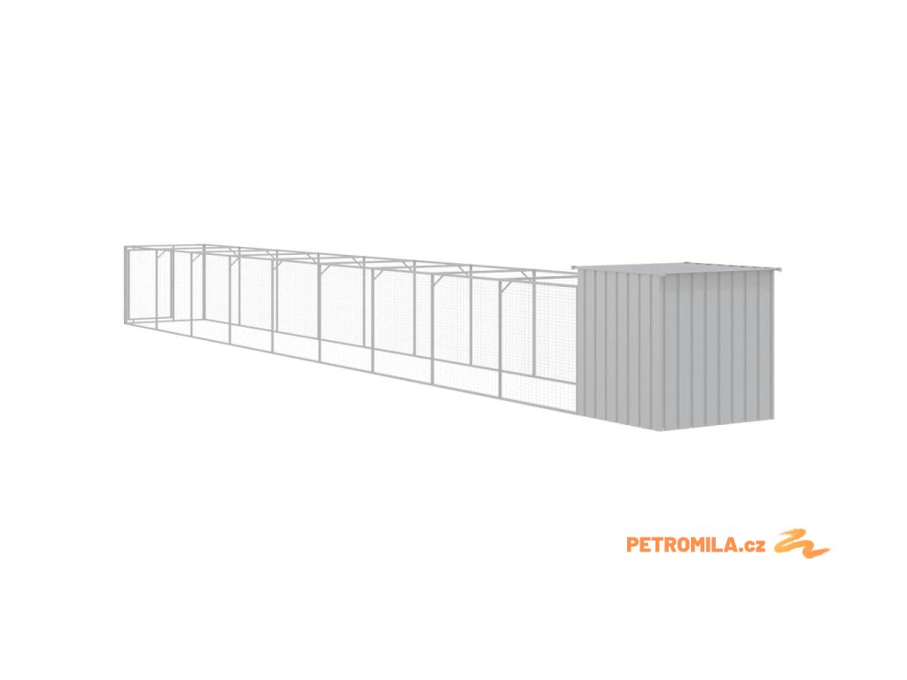 Psí bouda s výběhem světle šedá 110 x 1 017 x 110 cm ocel