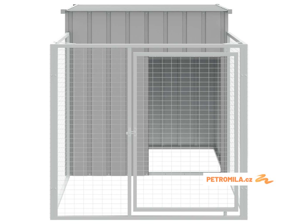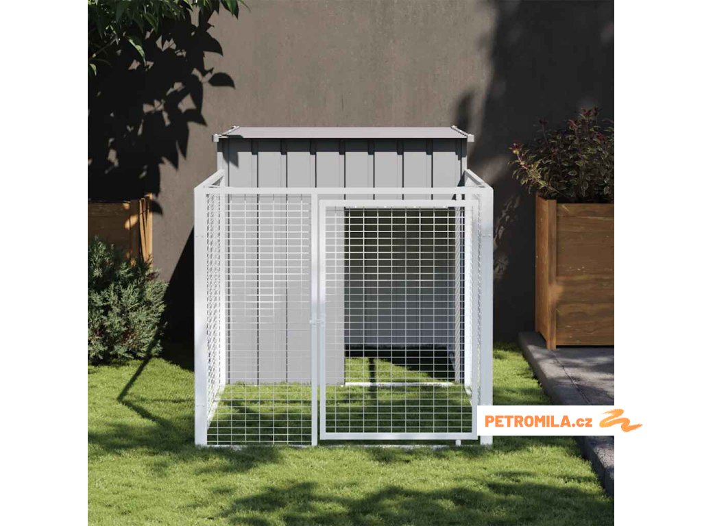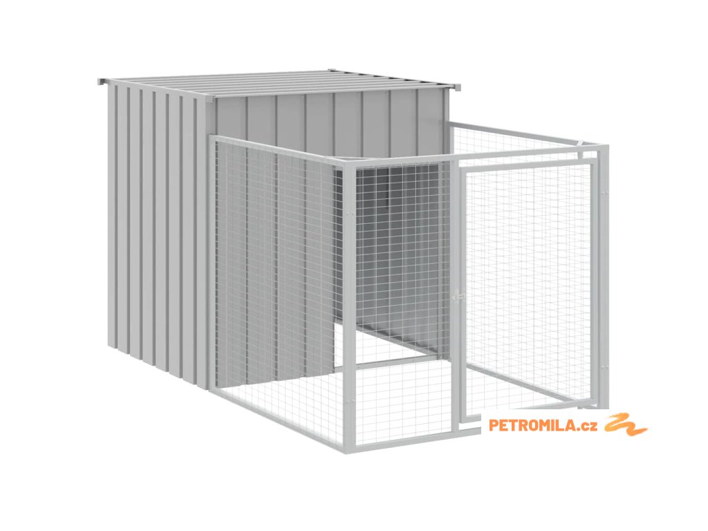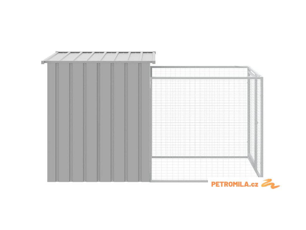 Psí bouda s výběhem světle šedá 110 x 201 x 110 cm pozinkovaná ocel