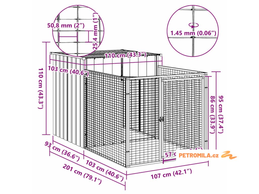 - Odolná konstrukce: Díky robustní a odolné konstrukci z pozinkované oceli je psí bouda odolná a vyrobená pro dlouhou životnost.