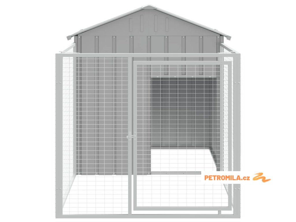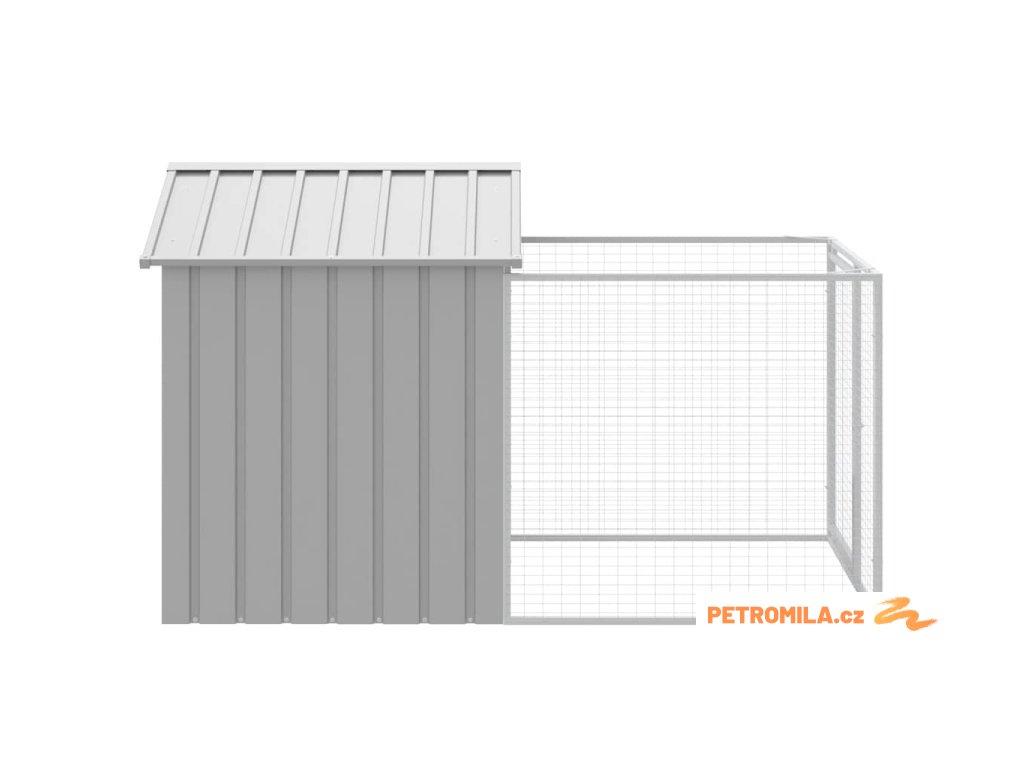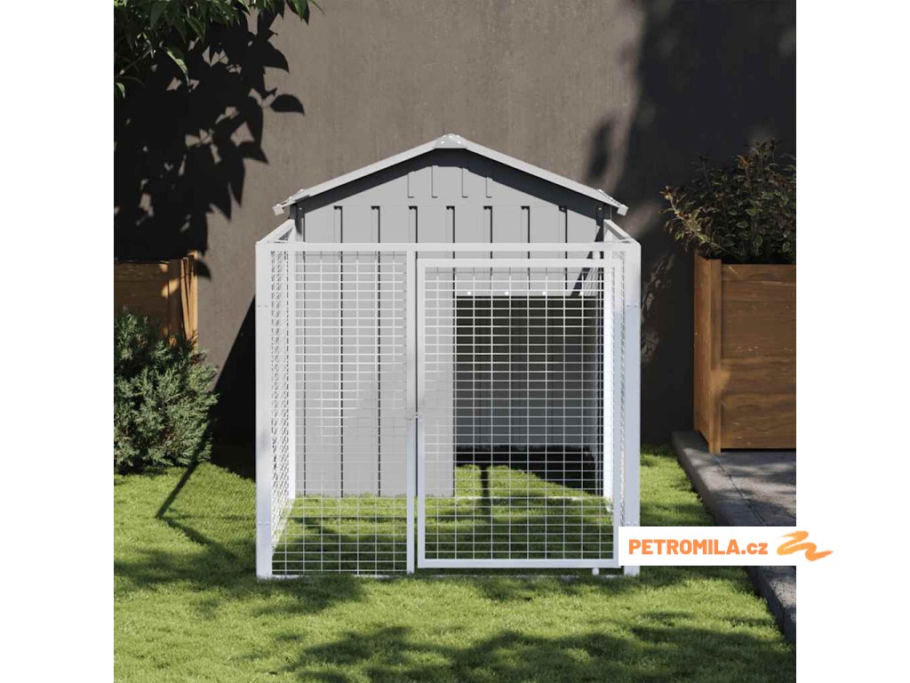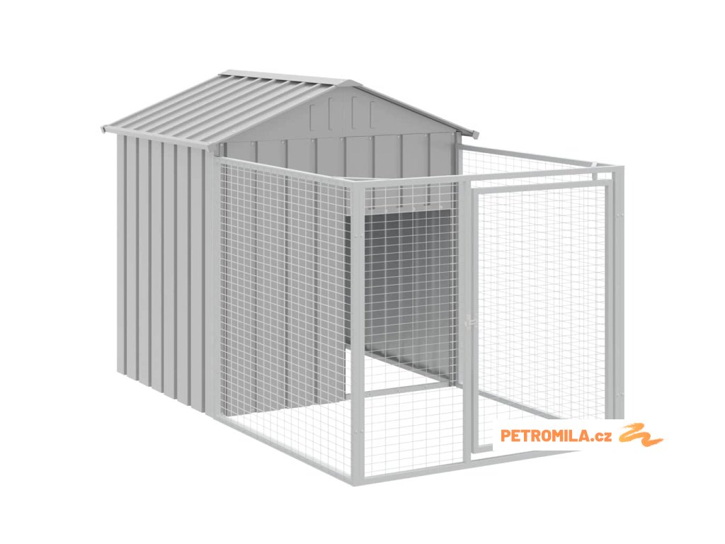 Psí bouda s výběhem světle šedá 117x201x123 cm pozinkovaná ocel