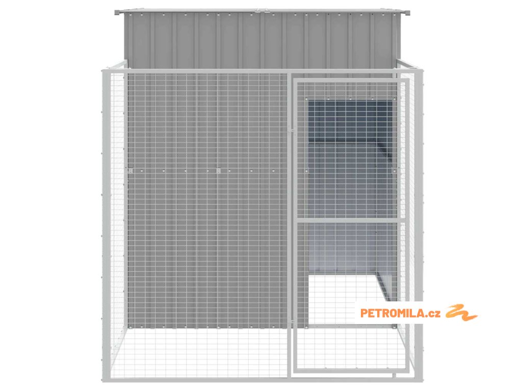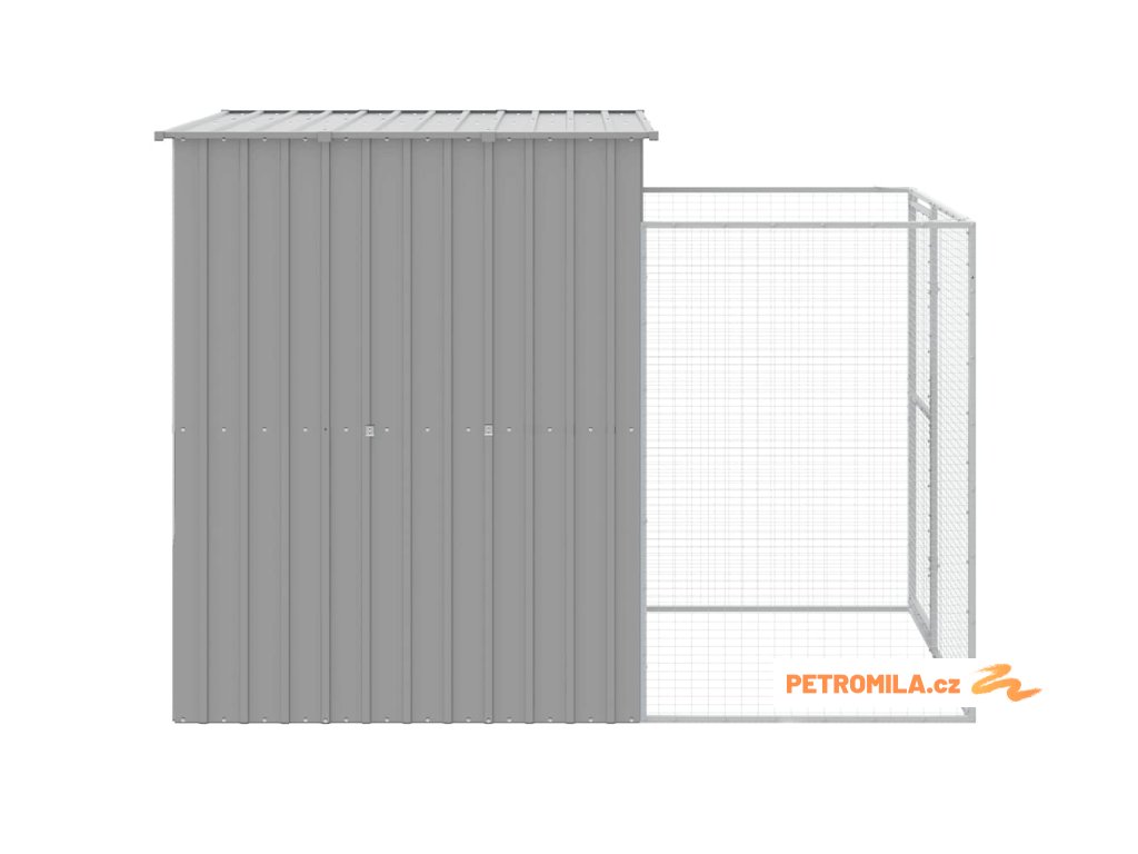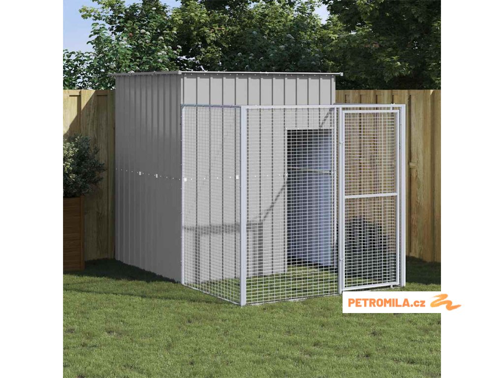 Psí bouda s výběhem světle šedá 165x251x181 cm pozinkovaná ocel