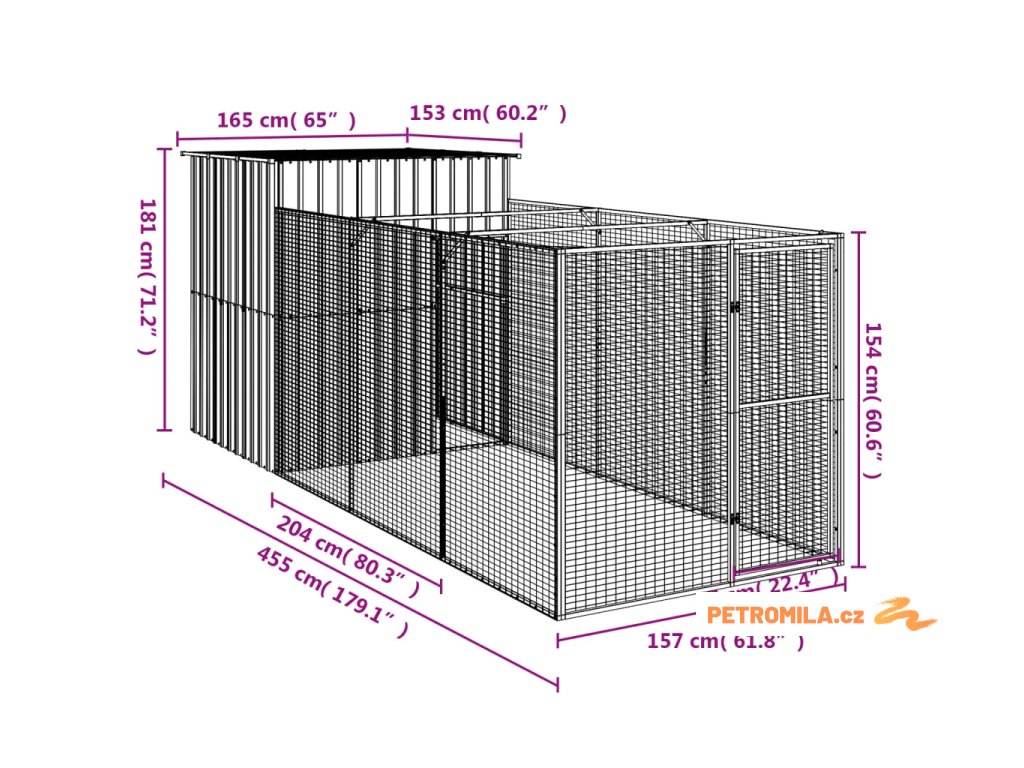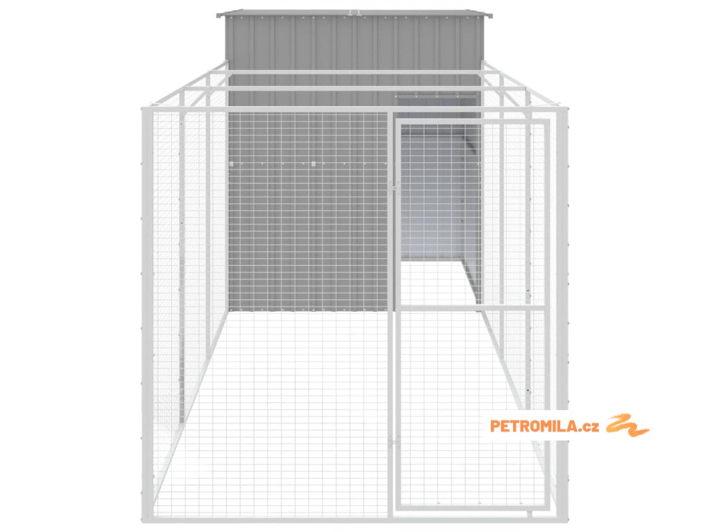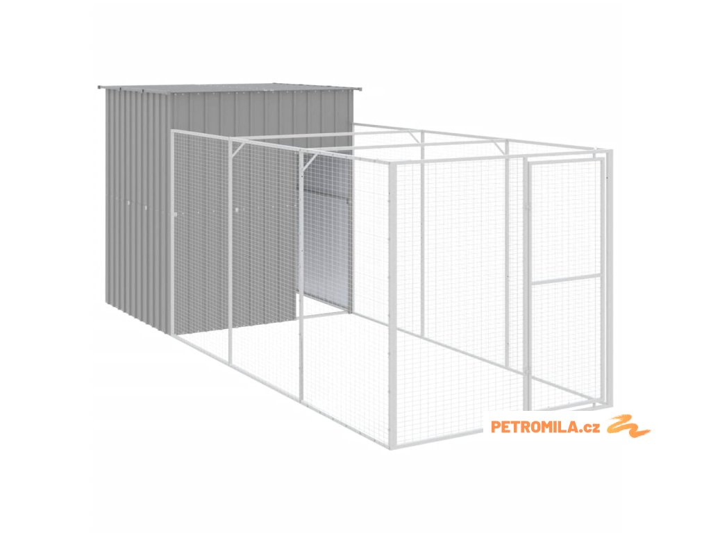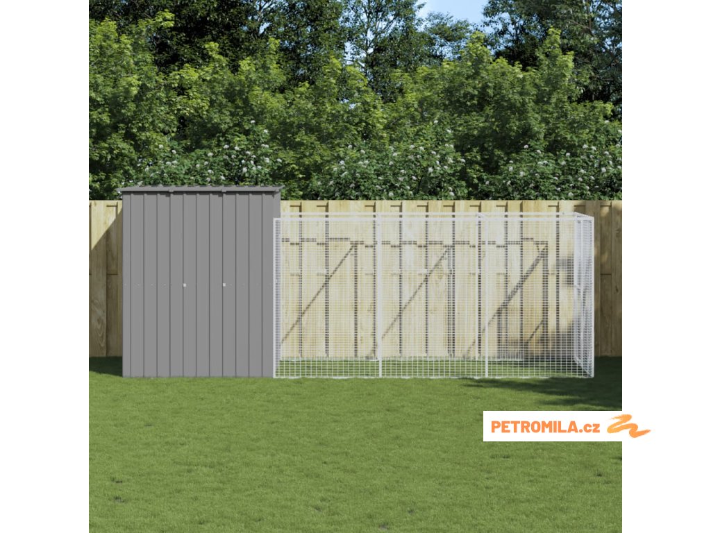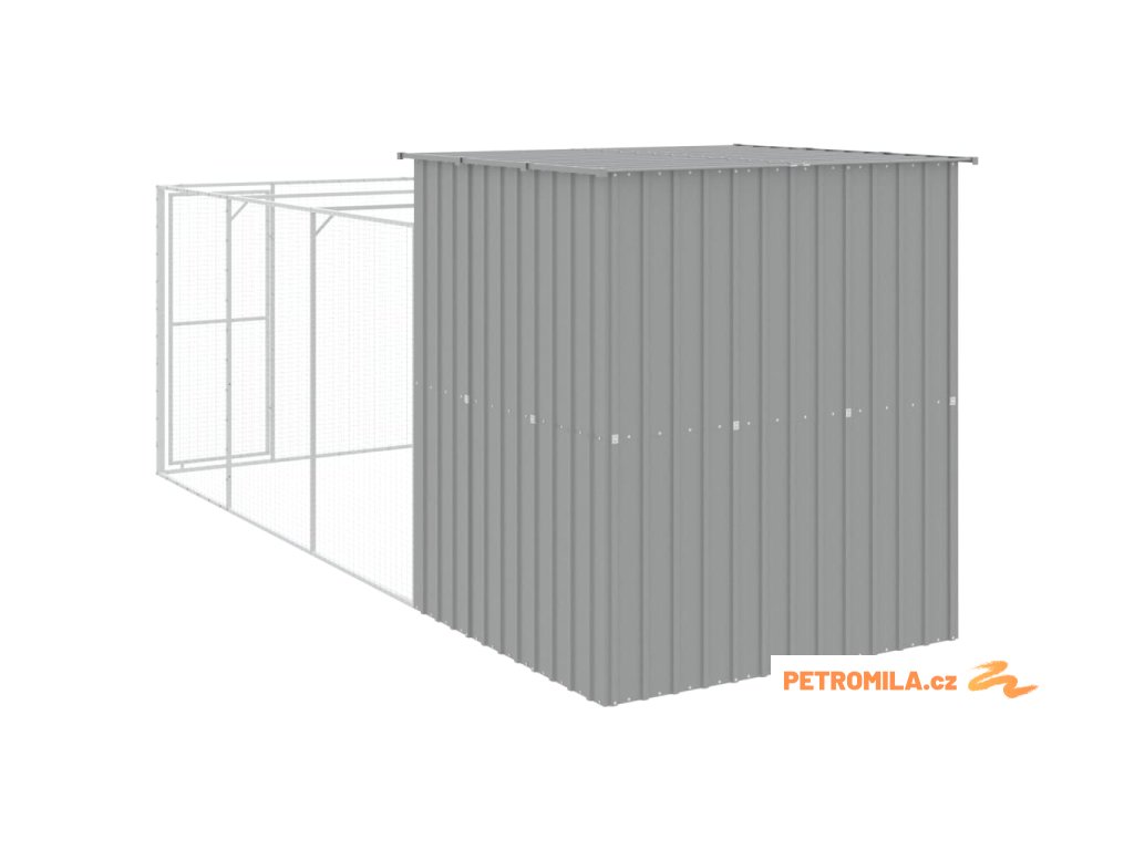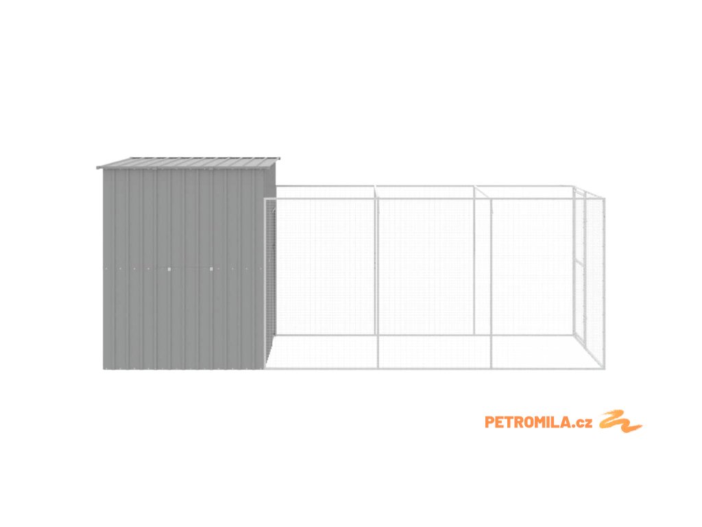 Psí bouda s výběhem světle šedá 165x455x181 cm pozinkovaná ocel