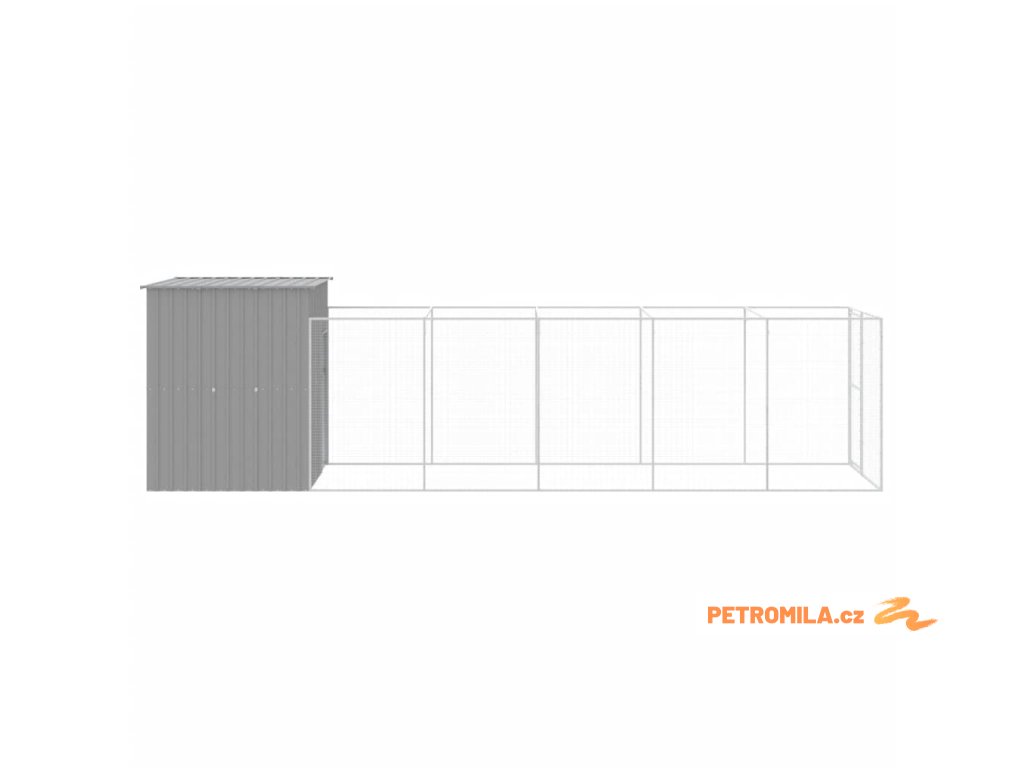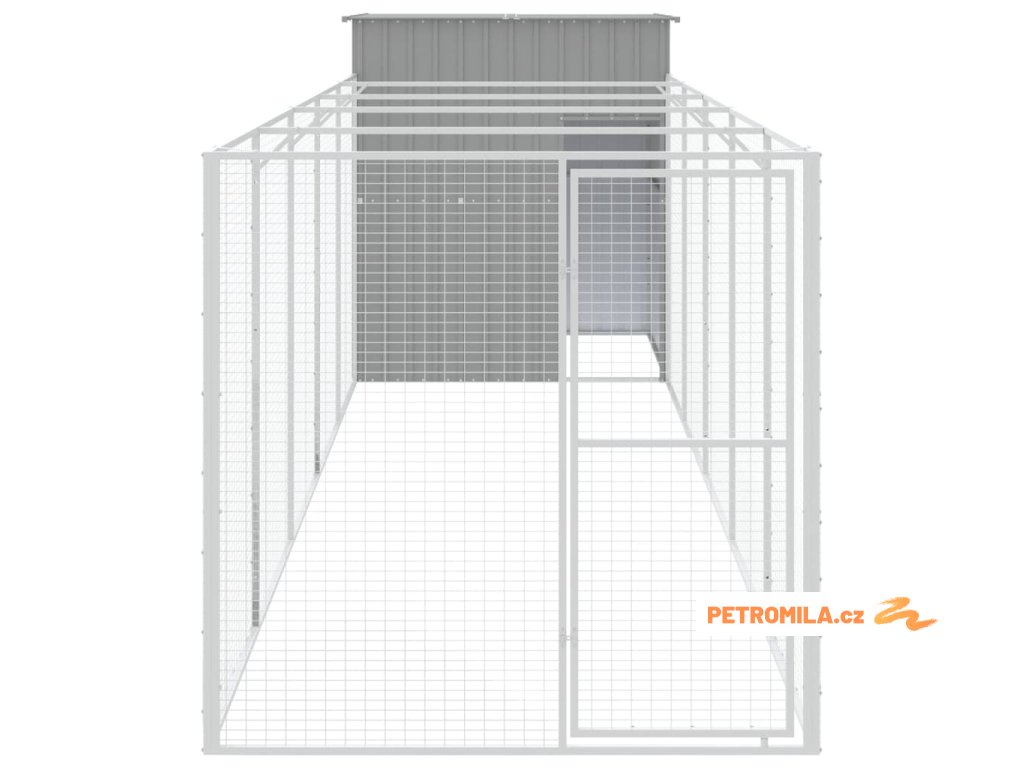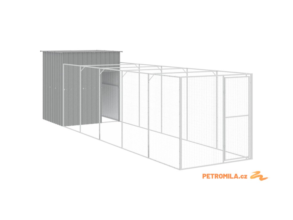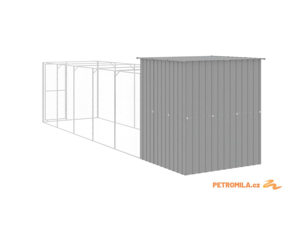 Psí bouda s výběhem světle šedá 165x659x181 cm pozinkovaná ocel