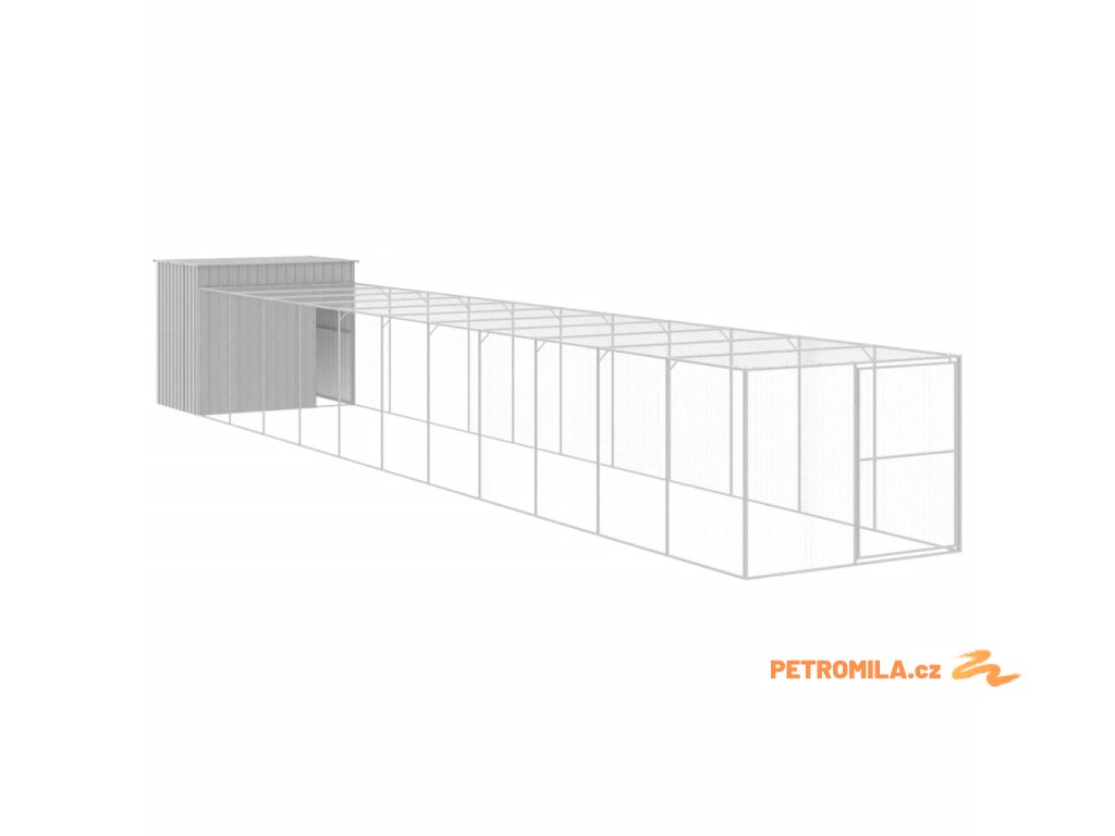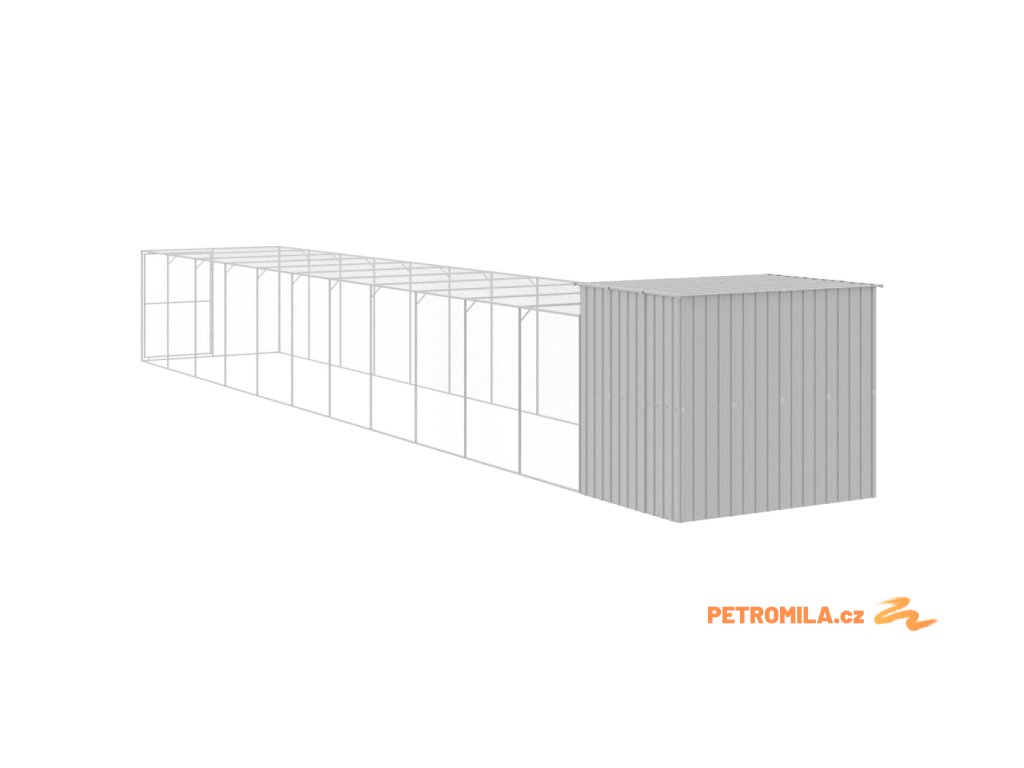 Psí bouda s výběhem světle šedá 214 x 1 273 x 181 cm ocel