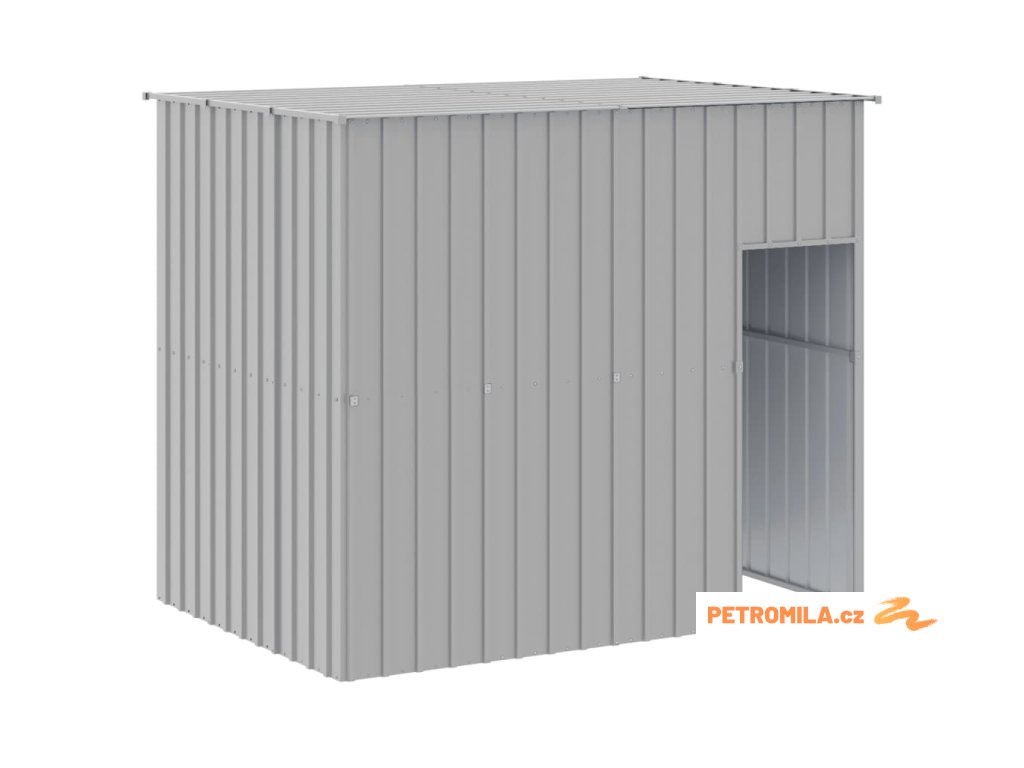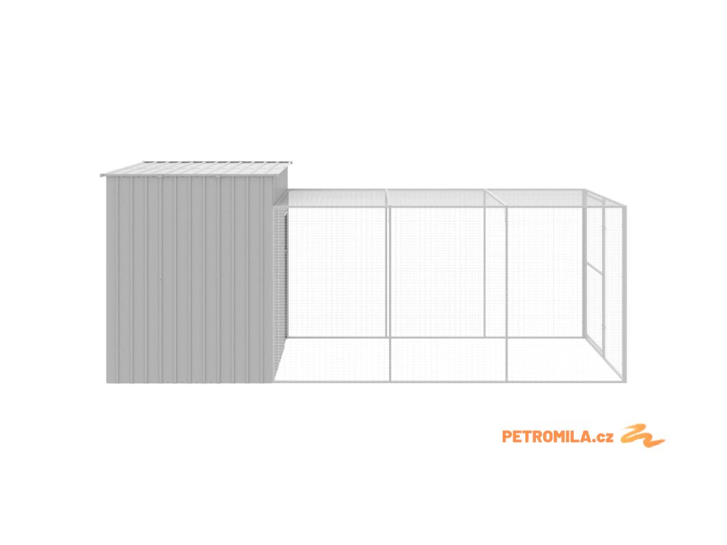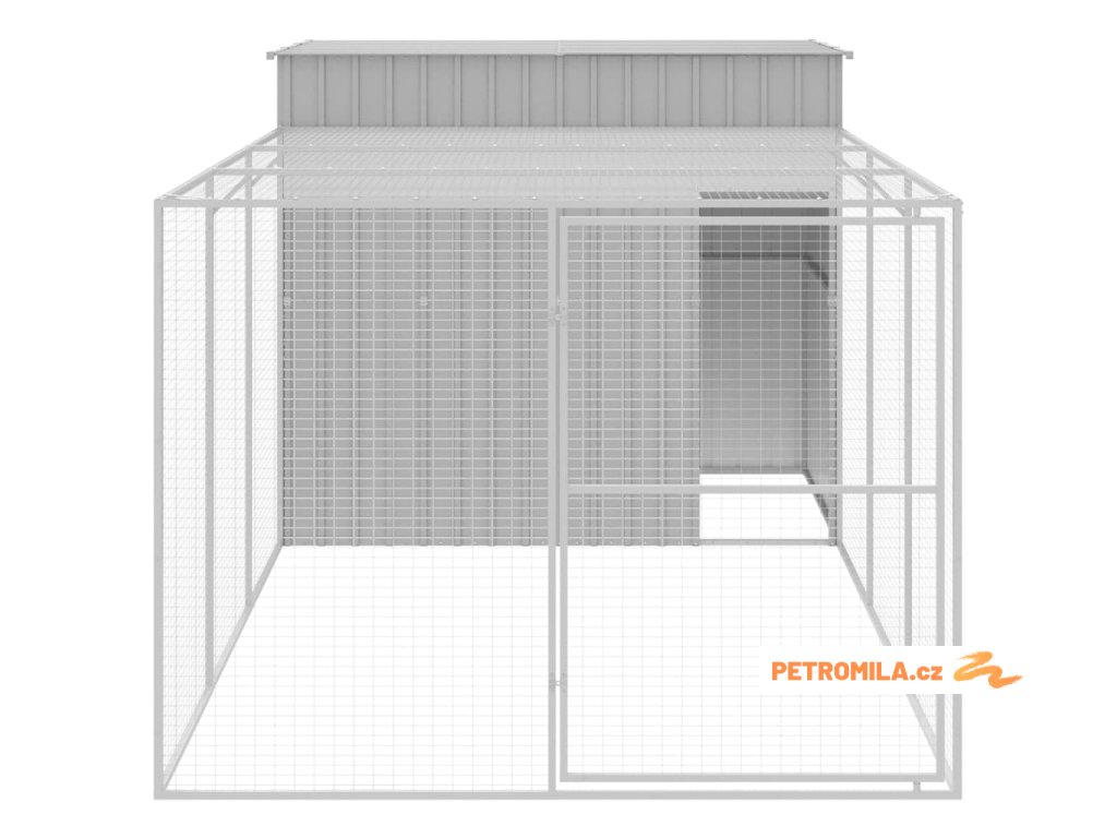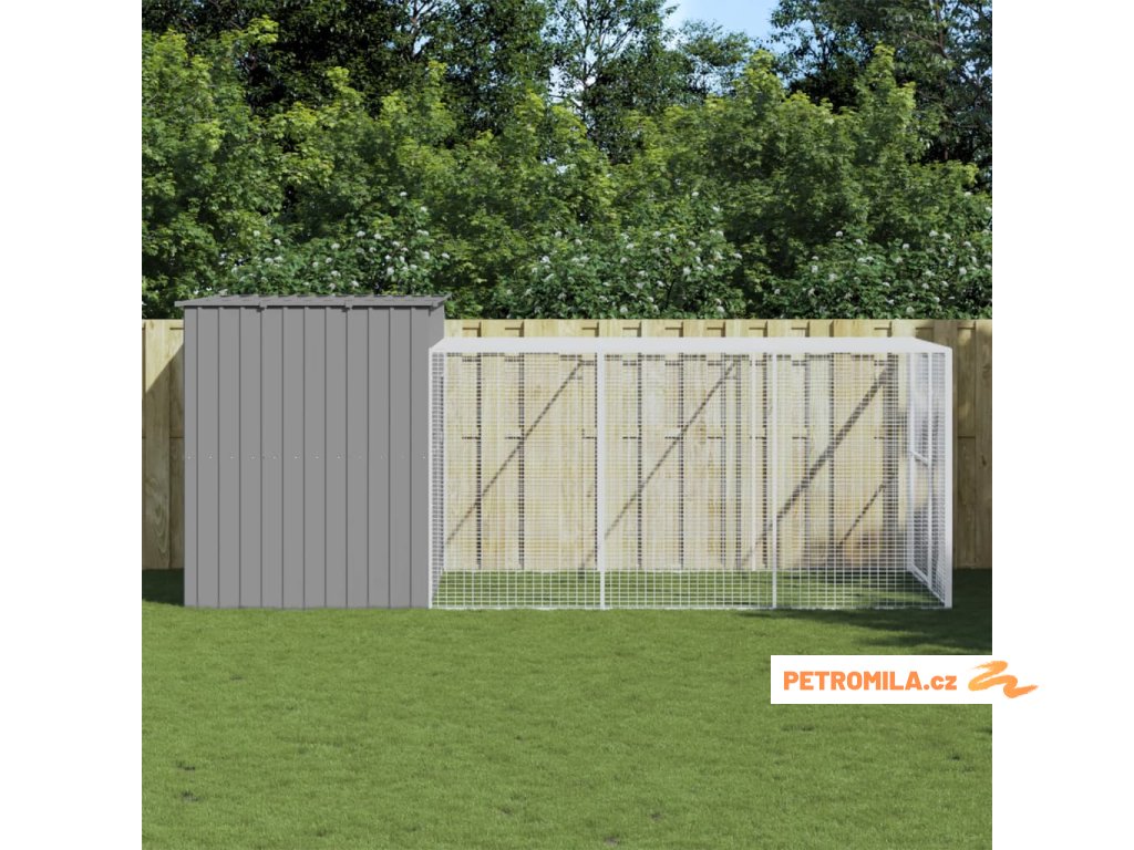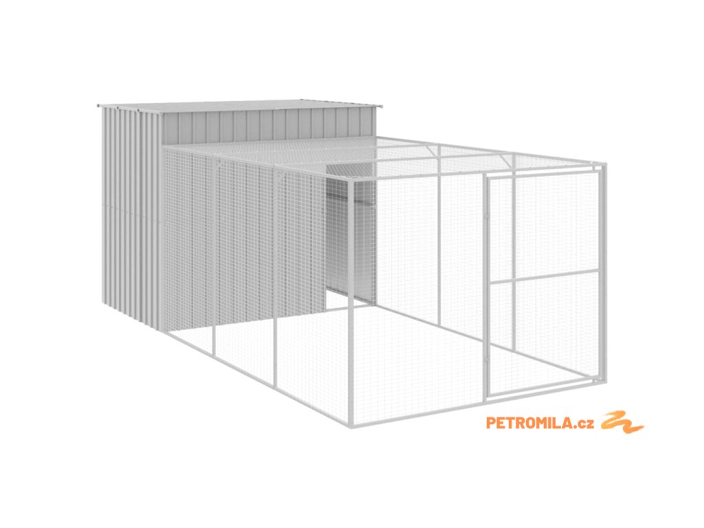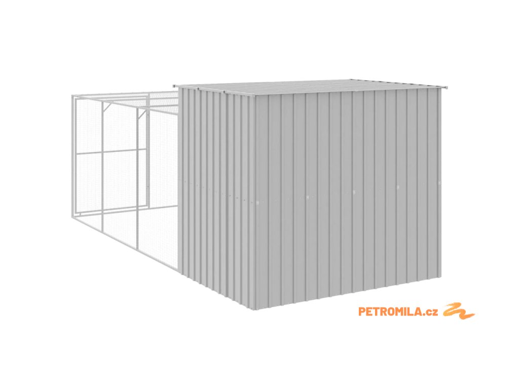 Psí bouda s výběhem světle šedá 214x457x181 cm pozinkovaná ocel