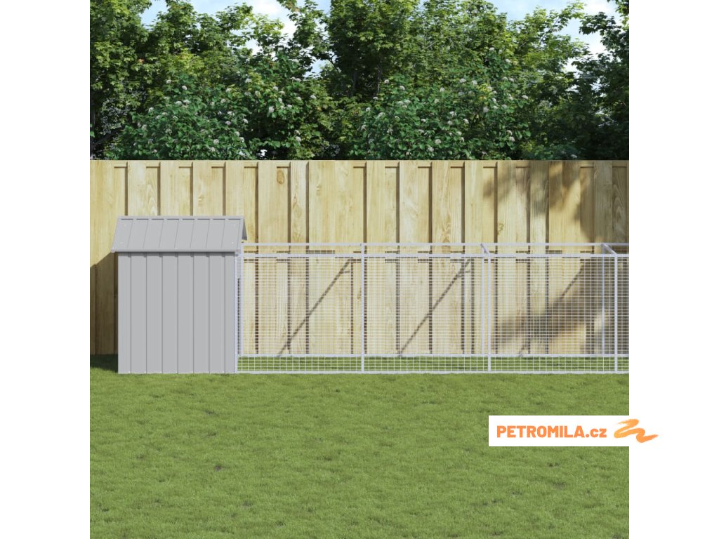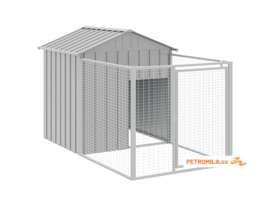 Psí bouda se střechou světle šedá 117 x 609 x 123 cm ocel