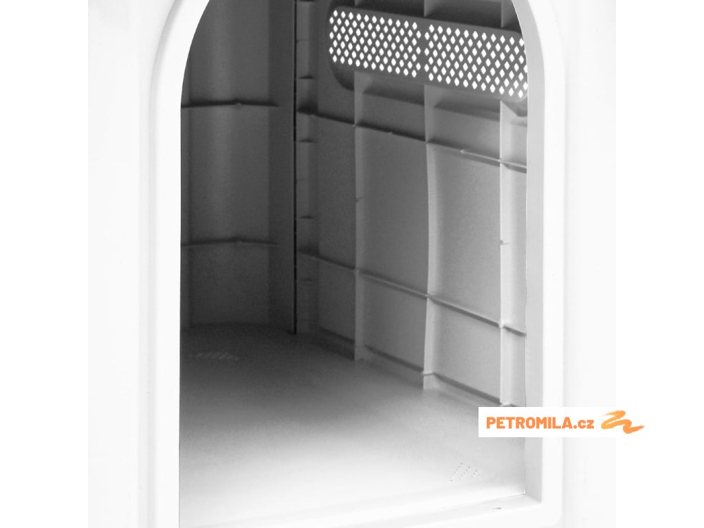 - Zvýšená podlaha: Konstrukce s vyšší podlahou zabraňuje protékání vody do psího přívodu a udržuje psí boudu vždy suchou a pohodlnou pro vaše mazlíčky.