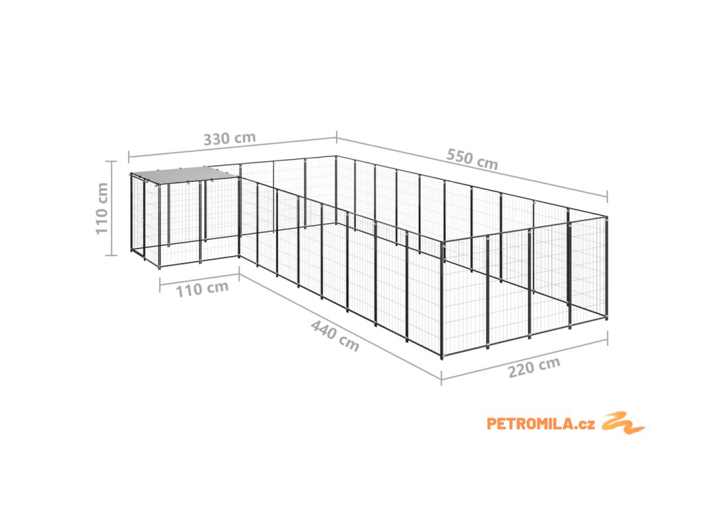 Psí kotec černý 13,31 m² ocel
