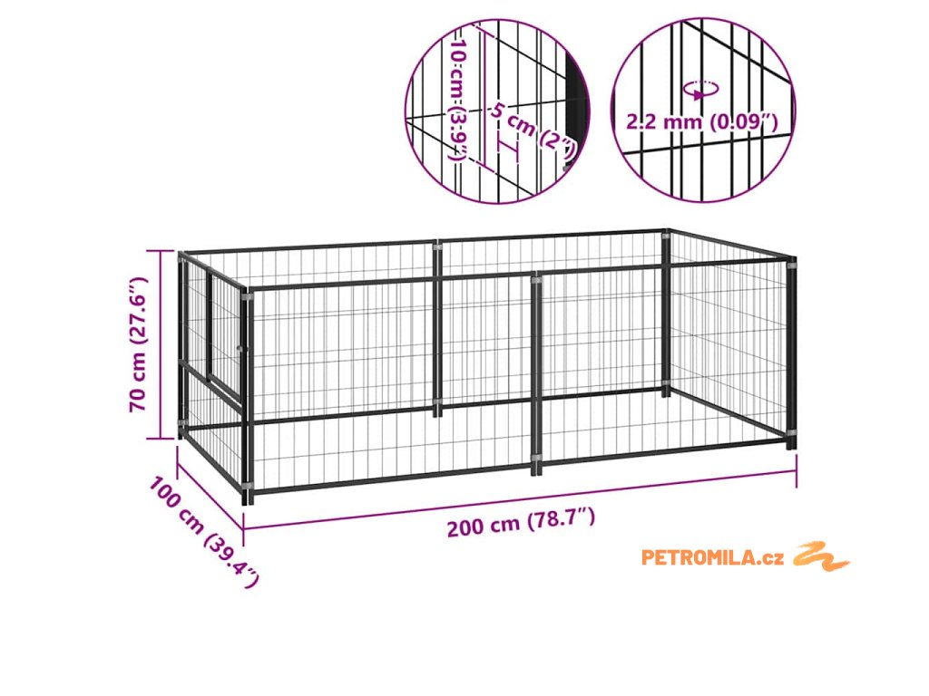 Psí kotec černý 200 x 100 x 70 cm ocel