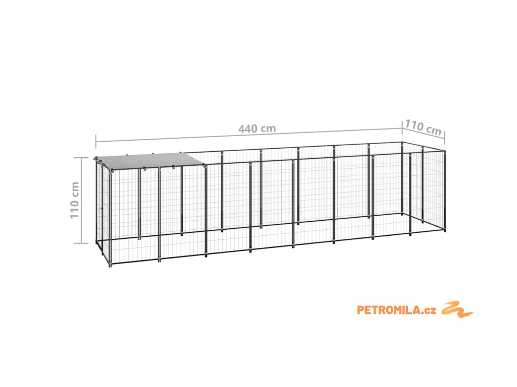 Psí kotec černý 4,84 m² ocel