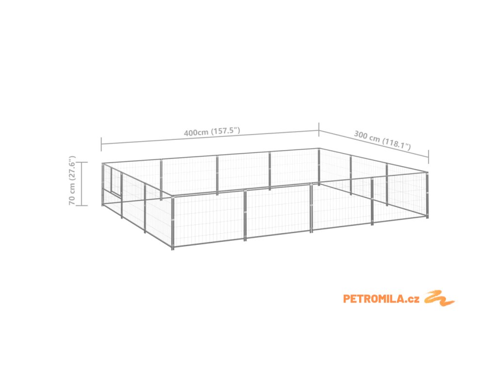 Psí kotec stříbrný 12 m² ocel