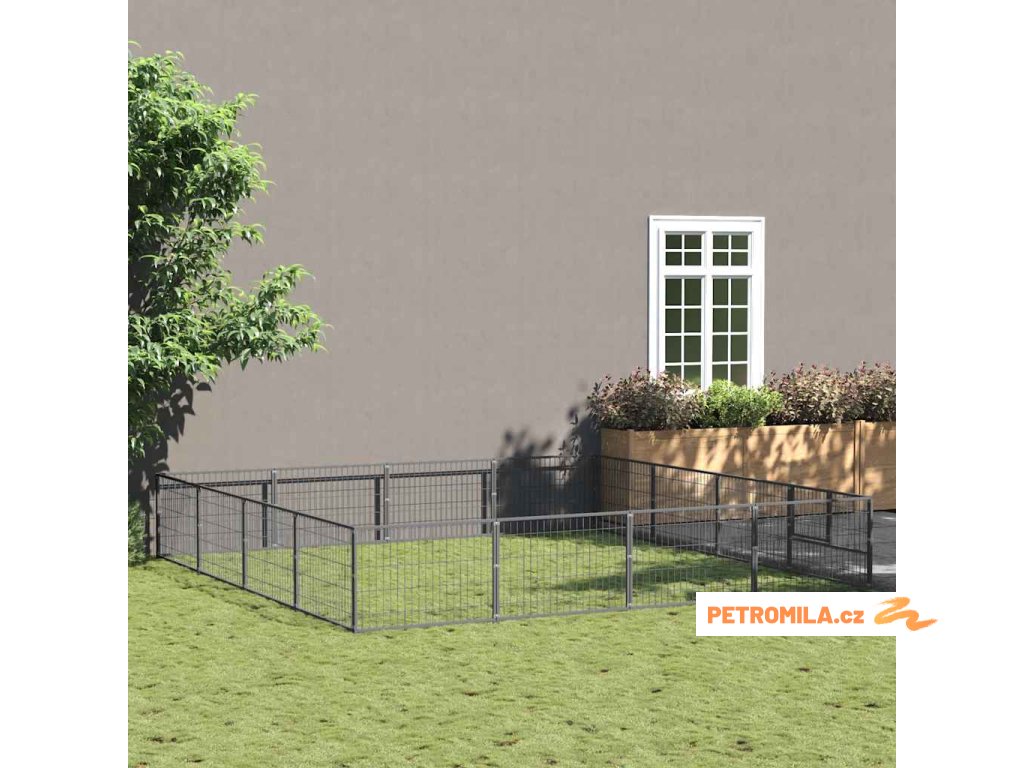 Psí kotec stříbrný 16 m² ocel