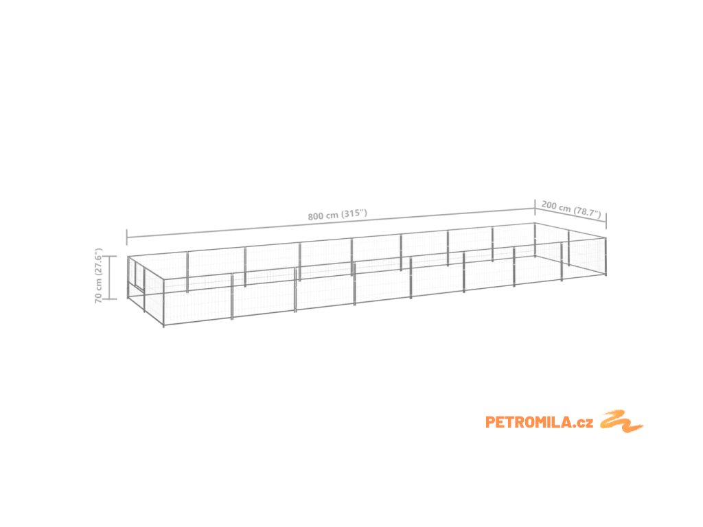 Psí kotec stříbrný 16 m² ocel