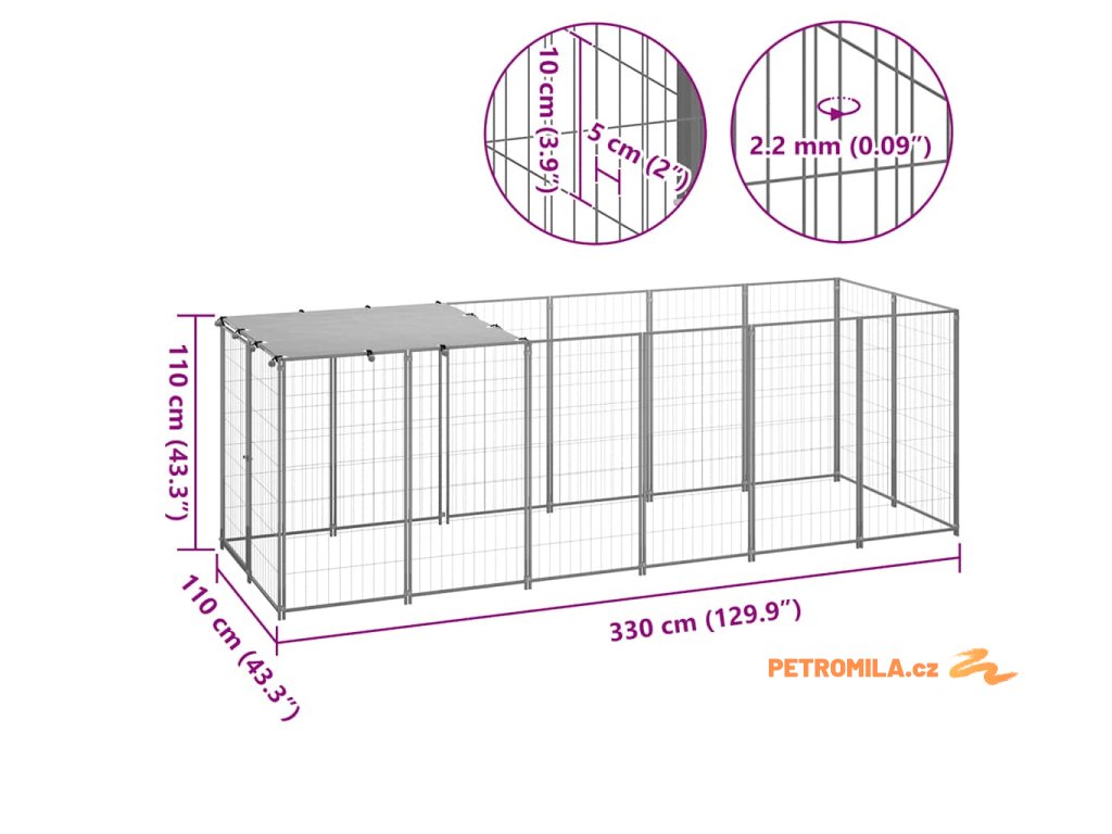 Psí kotec stříbrný 330 x 110 x 110 cm ocel