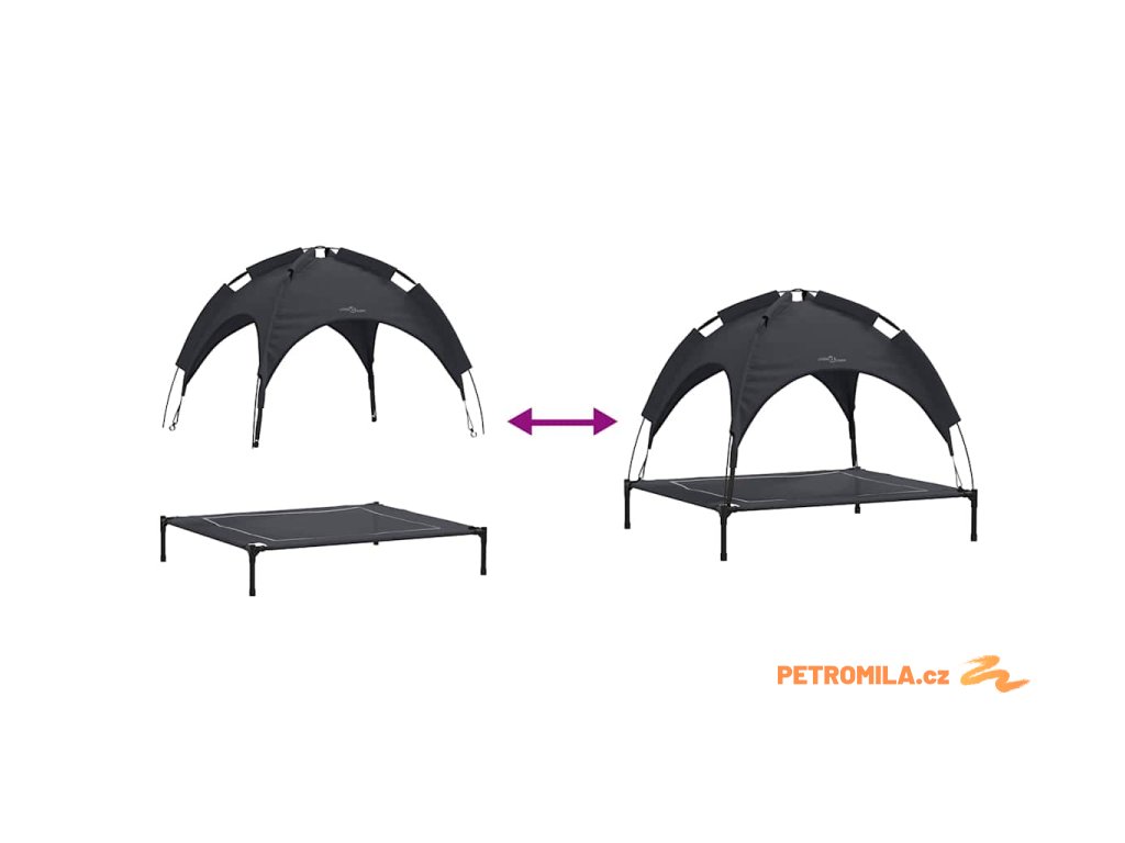 - Odnímatelná stříška: Dodává stín a chrání vašeho mazlíčka před přímým slunečním světlem. S jednoduchým manuálním ovládáním je zakrytí nebo sundání stříšky rychlý a snadný, takže se přizpůsobíte počasí v mžiku.