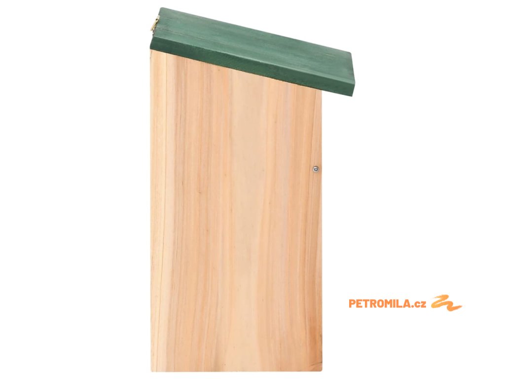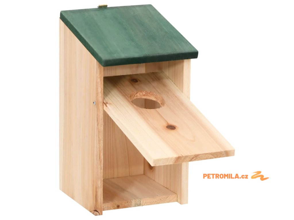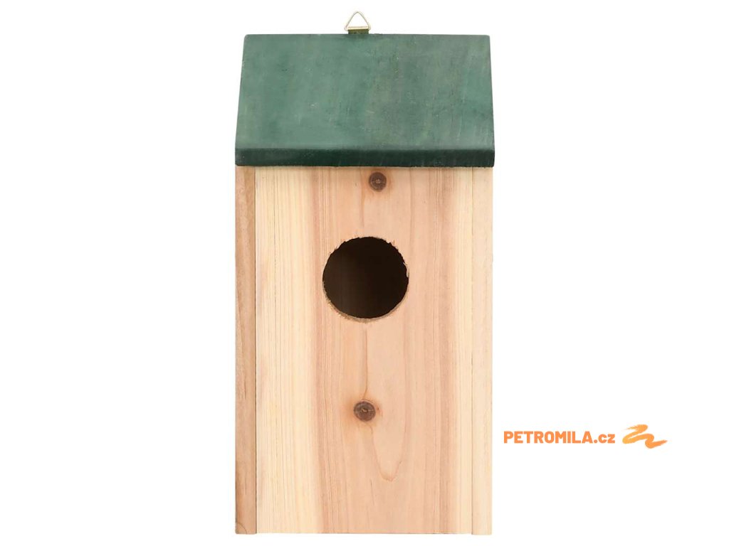 Se svou přírodní barvou a tmavě zelenou stříškou bude nejen perfektním místem pro hnízdění ptáků, ale také skvělou ozdobou vaší zahrady. Budka je vybavená kovovými háky, takže ji snadno zavěsíte kdekoliv na vaší zahradě.