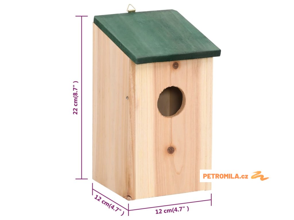 Tyto hezké ptačí budky jsou vyrobené z odolného dřeva a jsou jako stvořené pro mladou ptačí rodinku! Zkrášlí vaši zahradu a zároveň poskytnou útočiště vašim opeřeným přátelům.