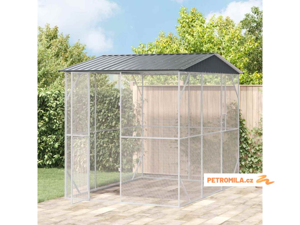 - Moderní styl: Tato venkovní voliéra má jednoduché a čisté linie, perfektně se hodící do současného venkovního prostředí. Antracitová barva dodává eleganci a nabízí jak estetický zážitek, tak funkčnost.