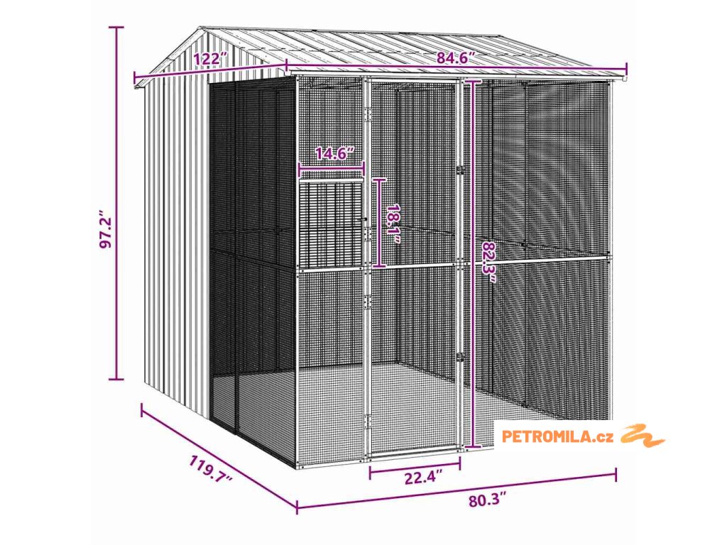 - Materiály: Vyrobená z kvalitní pozinkované oceli, tahle voliéra vydrží i drsné počasí a její lesklý vzhled zůstává. UV odolná konstrukce zajišťuje, že je bezpečná pro ptáky i na přímém slunci.