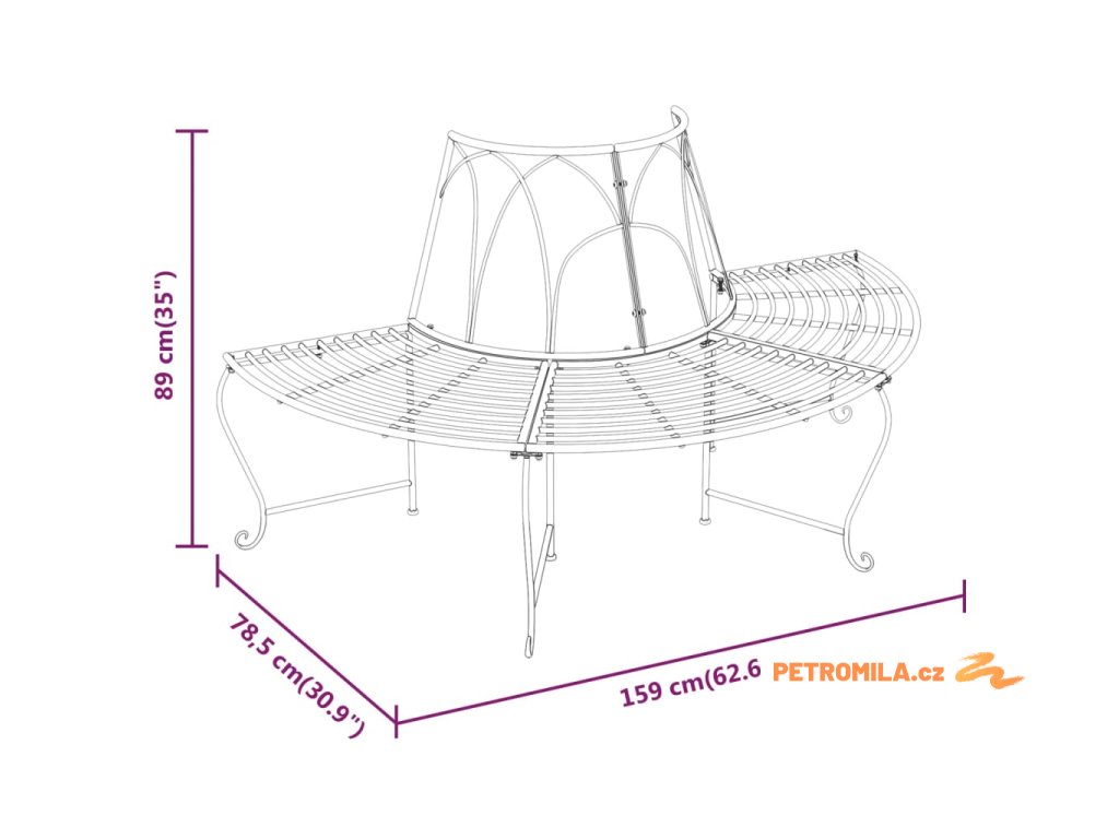 Půlkruhová lavice kolem stromu Ø 159 cm černá ocel