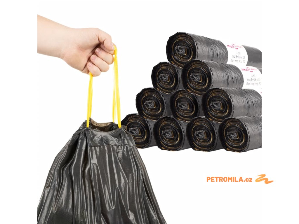 - Pevná stahovací šňůrka: Pytle na odpadky mají pevné stahovací šňůrky pro snadné upevnění, zvedání a přenášení, díky čemuž je jejich používání pohodlné a efektivní.