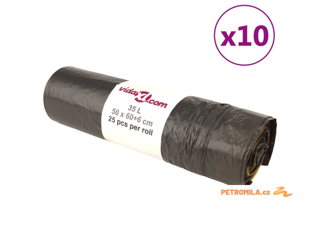 Pytle na odpadky se stahovacími šňůrkami 250 ks černé 35 l