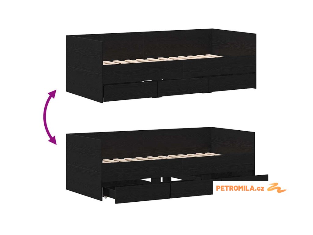 Rám denní postele se zásuvkami s čelo Černý dub 90 x 190 cm