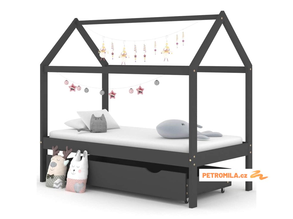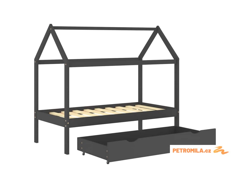 Rám dětské postele se zásuvkou tmavě šedý borovice 80 x 160 cm