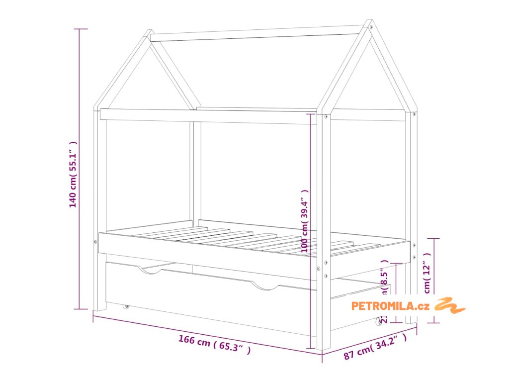 Postel je chytře navržená ve stylu domku na stromě. Chcete-li svému dítěti dopřát trochu soukromí, můžete mu na rám pověsit závěsy. Domeček mu kromě toho skvěle poslouží i jako koutek pro čtení nebo hraní. Rám postele je vyrobený z masivního borového dřeva, je tudíž mimořádně odolný a má dlouhou životnost. Pevné lamely nabízejí potřebnou oporu a zároveň jsou velmi pohodlné. Postel je vybavená zásuvkou se 2 úchyty a poskytuje dostatek úložného prostoru pro uschování složeného oblečení, hraček apod. Udržuje tak dětský pokoj čistý a uklizený. Kolečka se snadno pohybují na kobercích i dřevěných podlahách. Tento rám postele je vhodný pro matraci o rozměrech 80 x 160 cm.