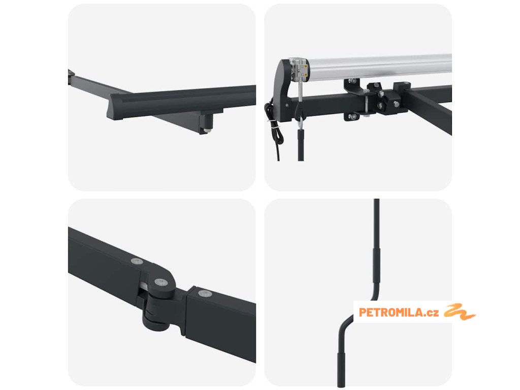 - Materiály: Vyrobený z pevného kovu, tenhle rám markýzy je postavený, aby vydržel, ideální pro rušné venkovní prostory. Je robustní a zároveň si zachovává elegantní vzhled bez ohledu na počasí. Kovový design dodává vaší zahradě nebo terase moderní atmosféru, spojující užitečnost s trendy stylem.