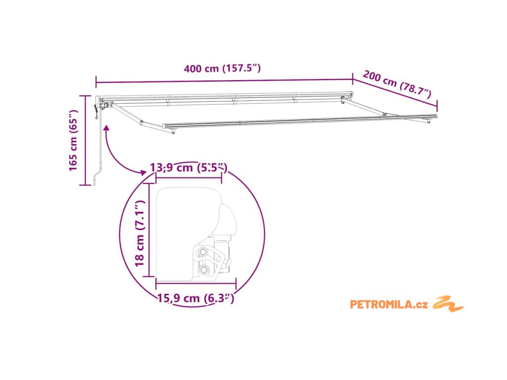 Rám markýzy Bílá 4 x 2 m Práškově lakovaná ocel a hliník