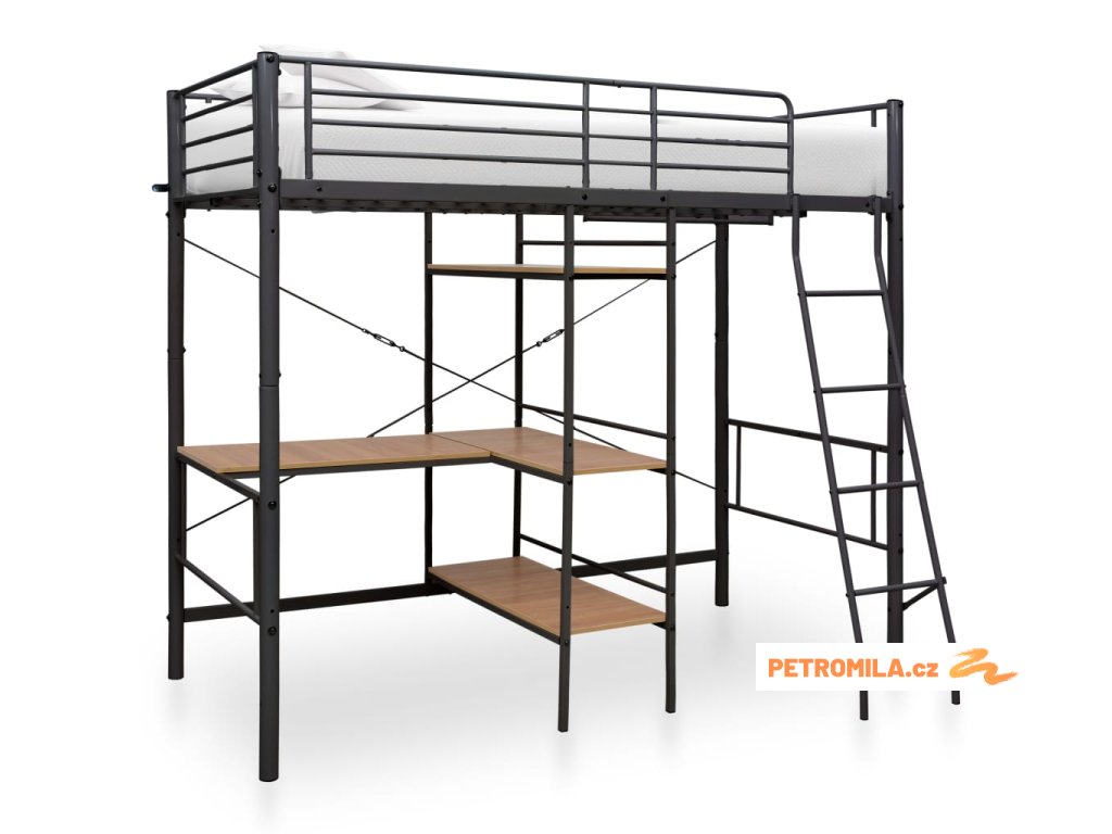 Rám poschoďové postele se stolem šedý kov 90 x 200 cm