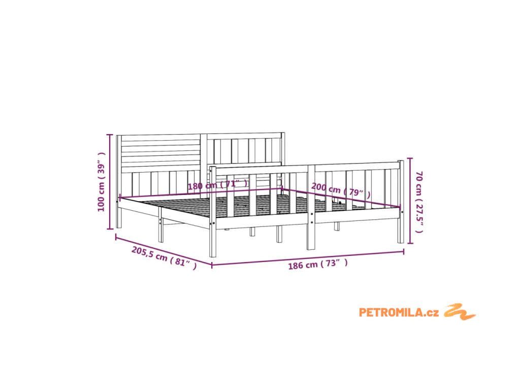 - Celkové rozměry rámu postele: 205,5 x 186 x 100 cm (D x Š x V)